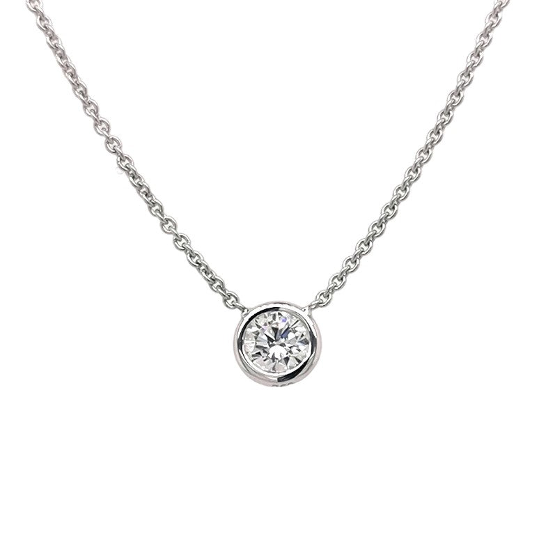18WG FIXED FINE BEZEL SET NECKLACE WITH RBC 1=0.30CT EFG SI2-3 (9923) **18WG ITALIAN CHAIN ADJUSTABLE 42-45CM