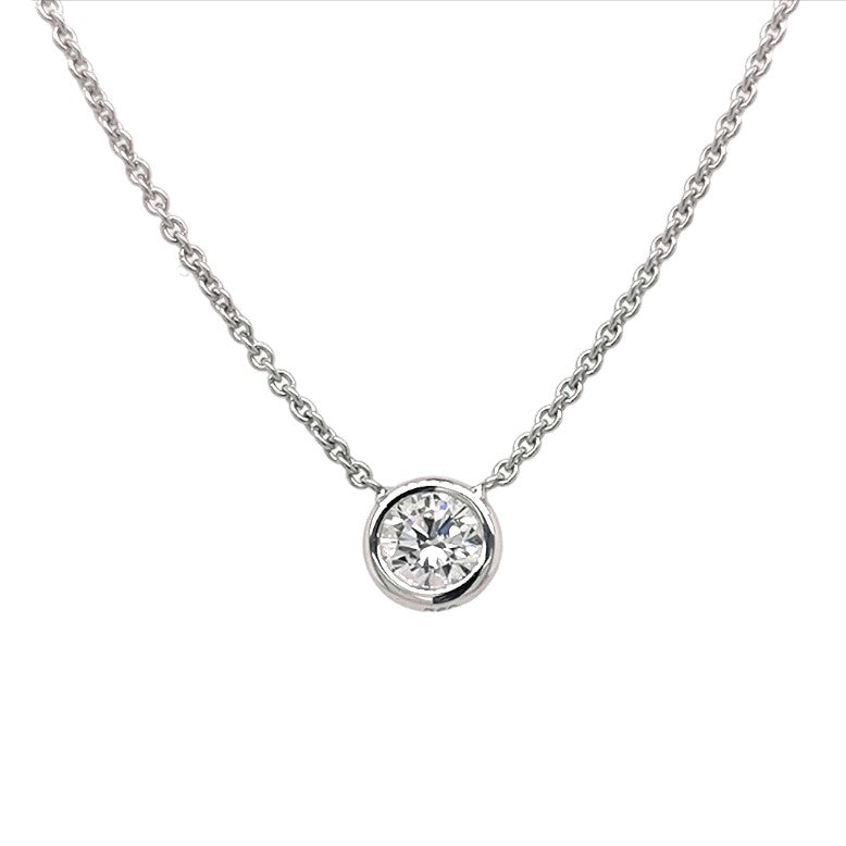18WG FIXED FINE BEZEL SET NECKLACE WITH RBC 1=0.40CT G SI2 (2407076) GIA **18WG ITALIAN CHAIN ADJUSTABLE 42-45CM**