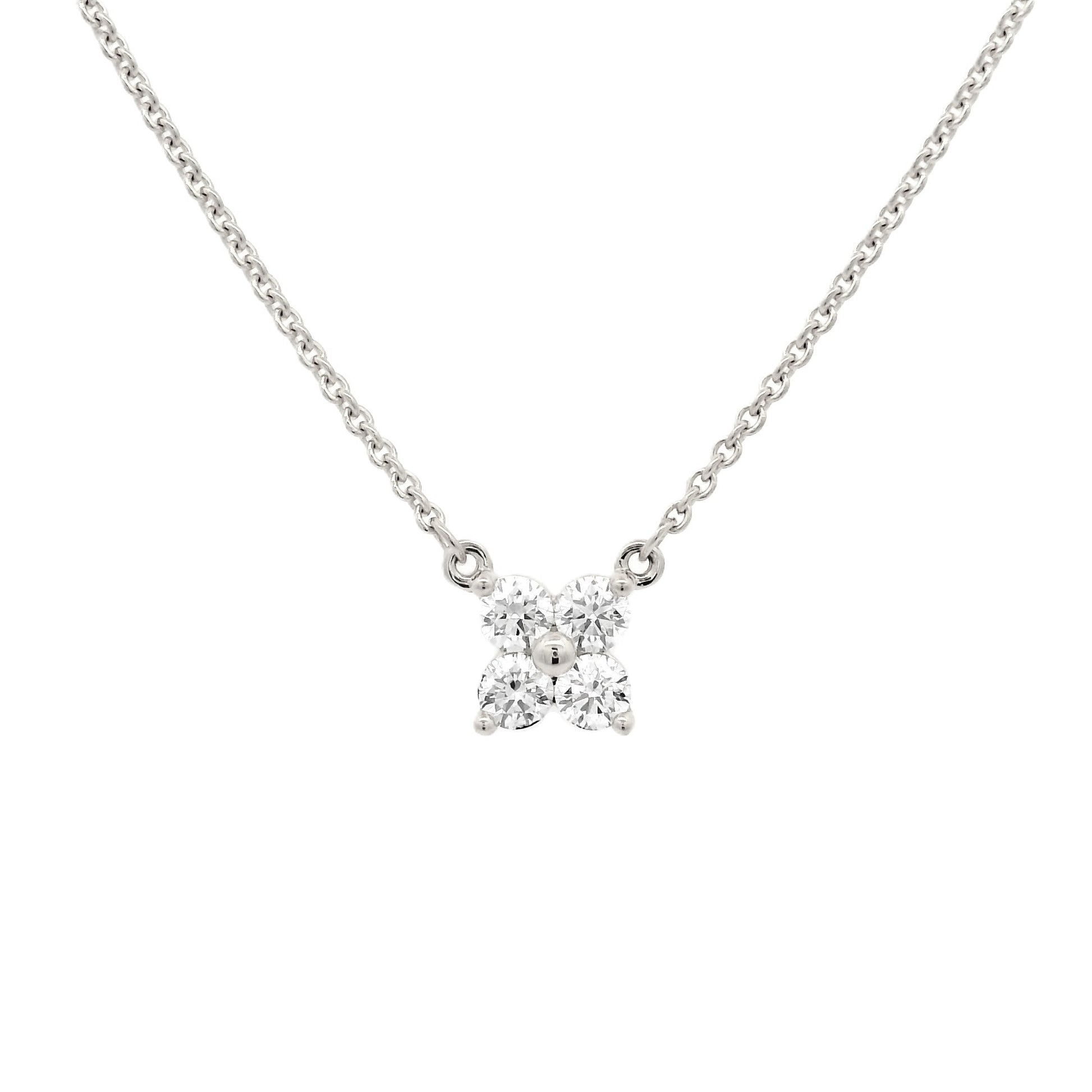 9WG FLOWER NECKLACE SET WITH RBC 4=0.28CT WH PQ **9WG ITALIAN CHAIN ADJUSTABLE 42-45CM**