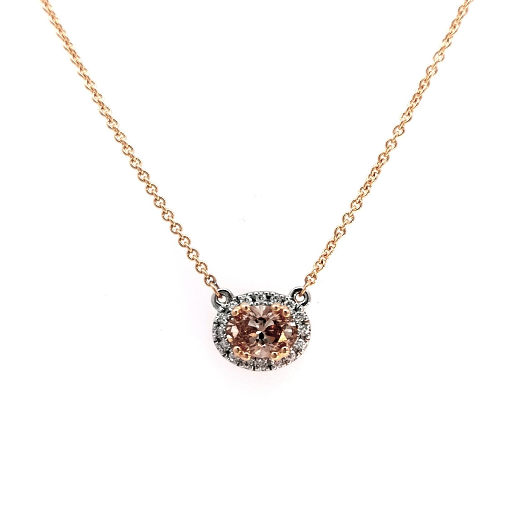 18WYG FIXED HORIZONTAL FINE HALO NECKLACE SET WITH OVAL 1=0.52CT C2 VS1 (2108231) AOR & RBC 16=0.07CT NCL ARGYLE LOT #459532 **18YG ITALIAN ADJUSTABLE CHAIN 42-45CM**