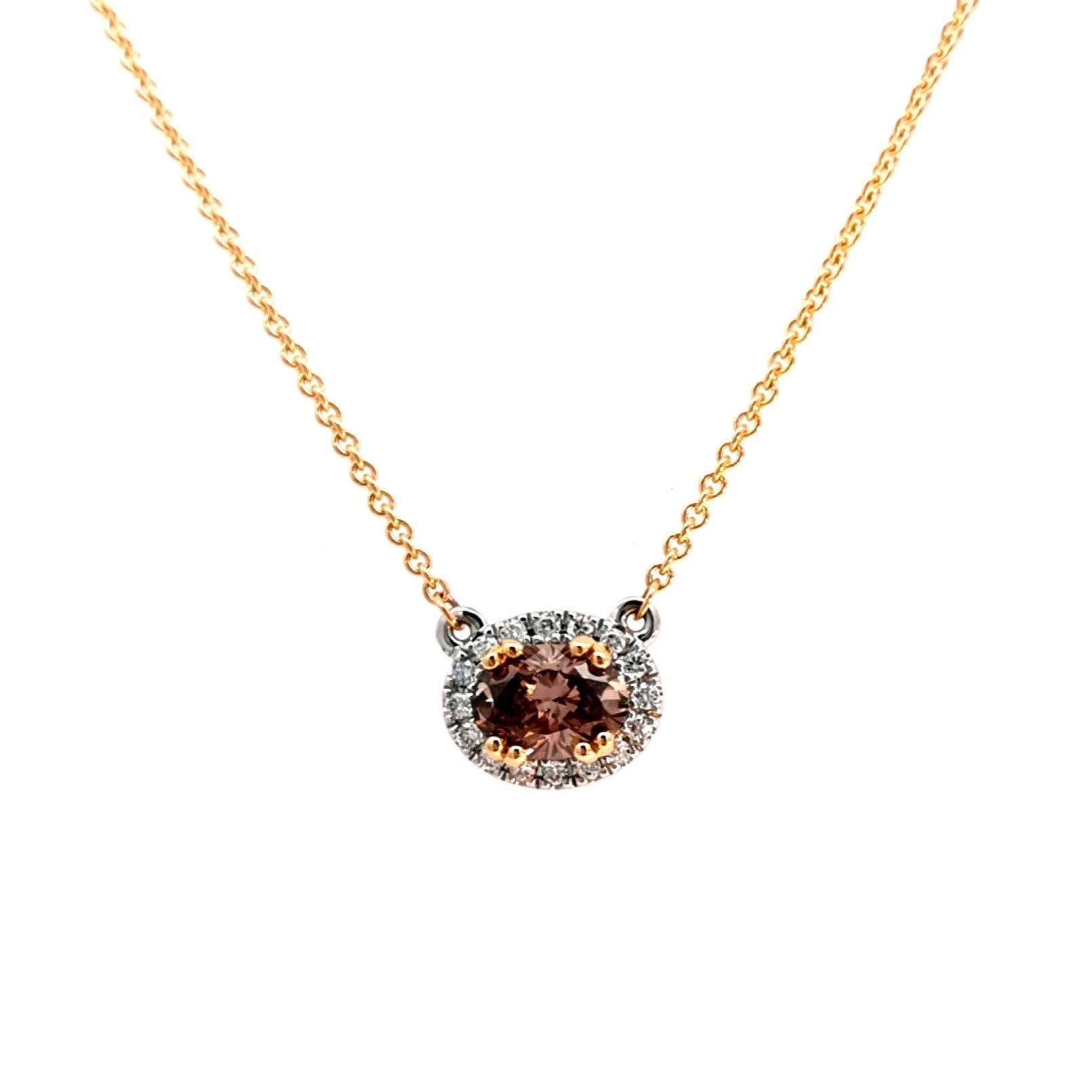 18WYG FIXED HORIZONTAL FINE HALO NECKLACE SET WITH OVAL 1=0.50CT C5 VS1 (2109139) AOR & RBC 16=0.07CT NCL ARGYLE LOT #459532 **18YG ITALIAN ADJUSTABLE CHAIN 42-45CM**