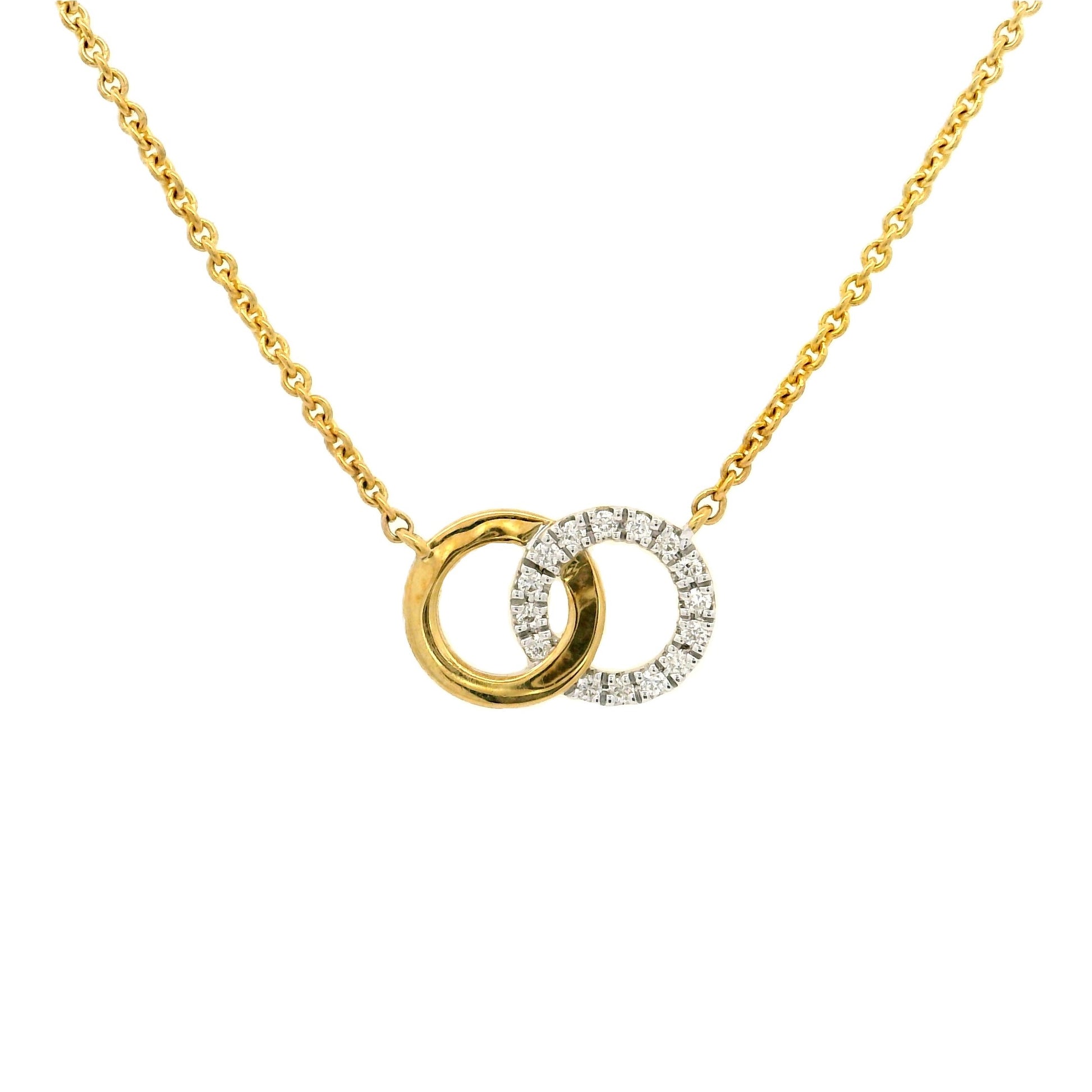 9YG INTERLOCKING CIRCLE PENDANT NECKLACE SET WITH RBC 15=0.05CT WH PQ **RH ON DIA** 9YG ITALIAN CHAIN ADJUSTABLE 42-45CM**