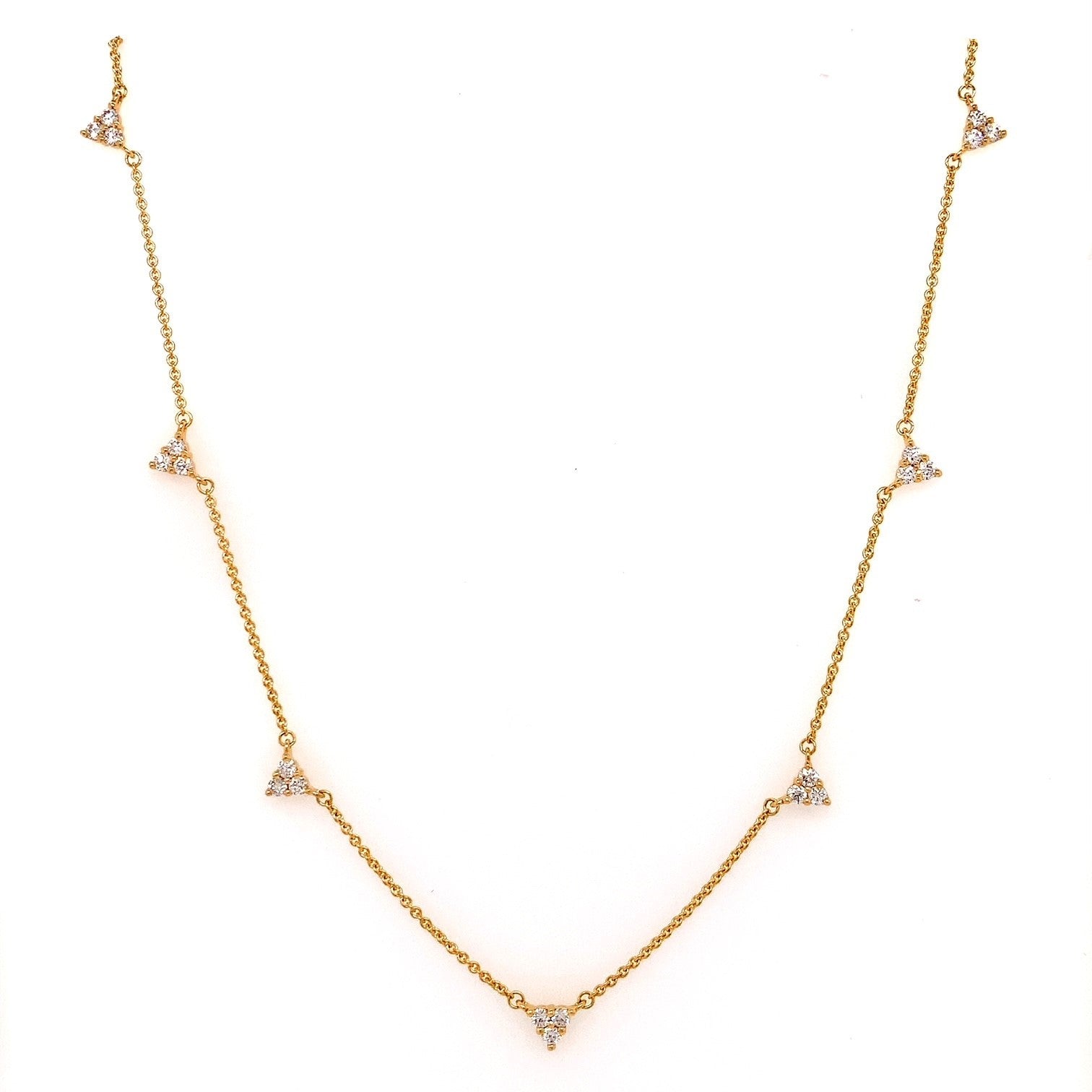 18YG THREE DIAMOND TRIANGLE NECKLACE SET WITH RBC 21=0.50CT WH SI **18YG ITALIAN CHAIN ADJUSTABLE 42-45CM**