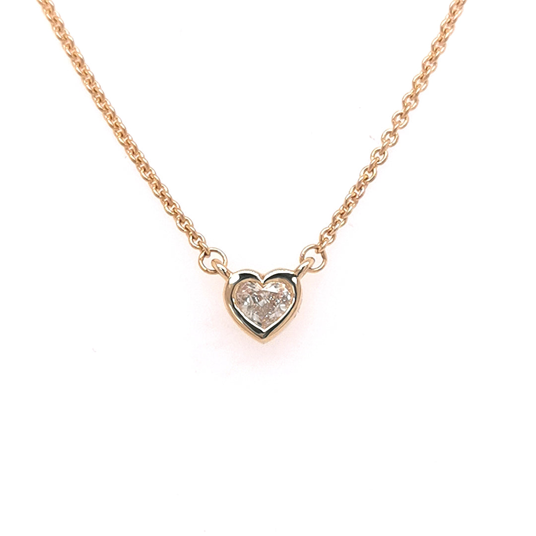 18YG BEZEL SET NECKLACE SET WITH HEART CUT 1=0.12CT EF VS **18YG ITALIAN CHAIN ADJUSTABLE 42-45CM**
