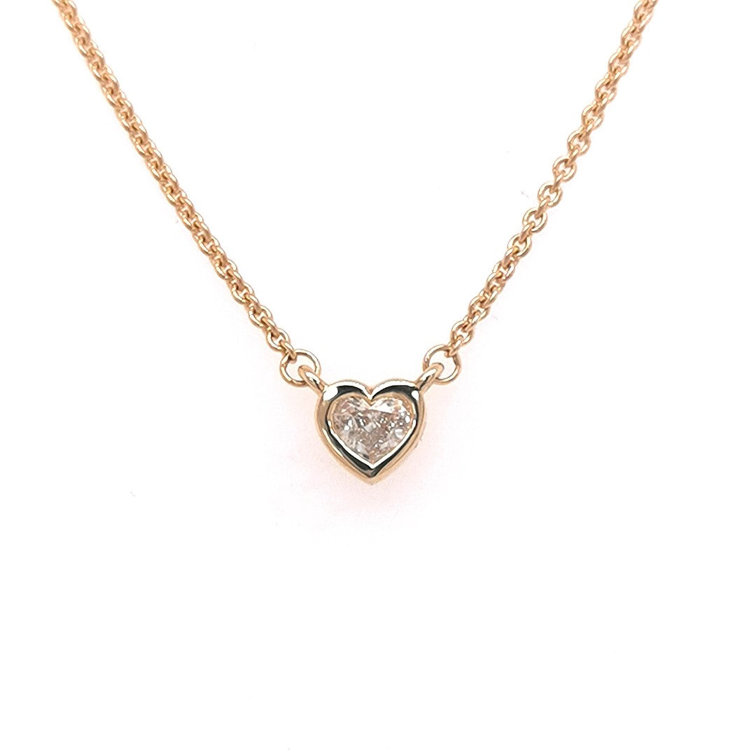 9YG BEZEL SET NECKLACE SET WITH HEART CUT 1=0.12CT EF VS **9YG ITALIAN CHAIN ADJUSTABLE 42-45CM**