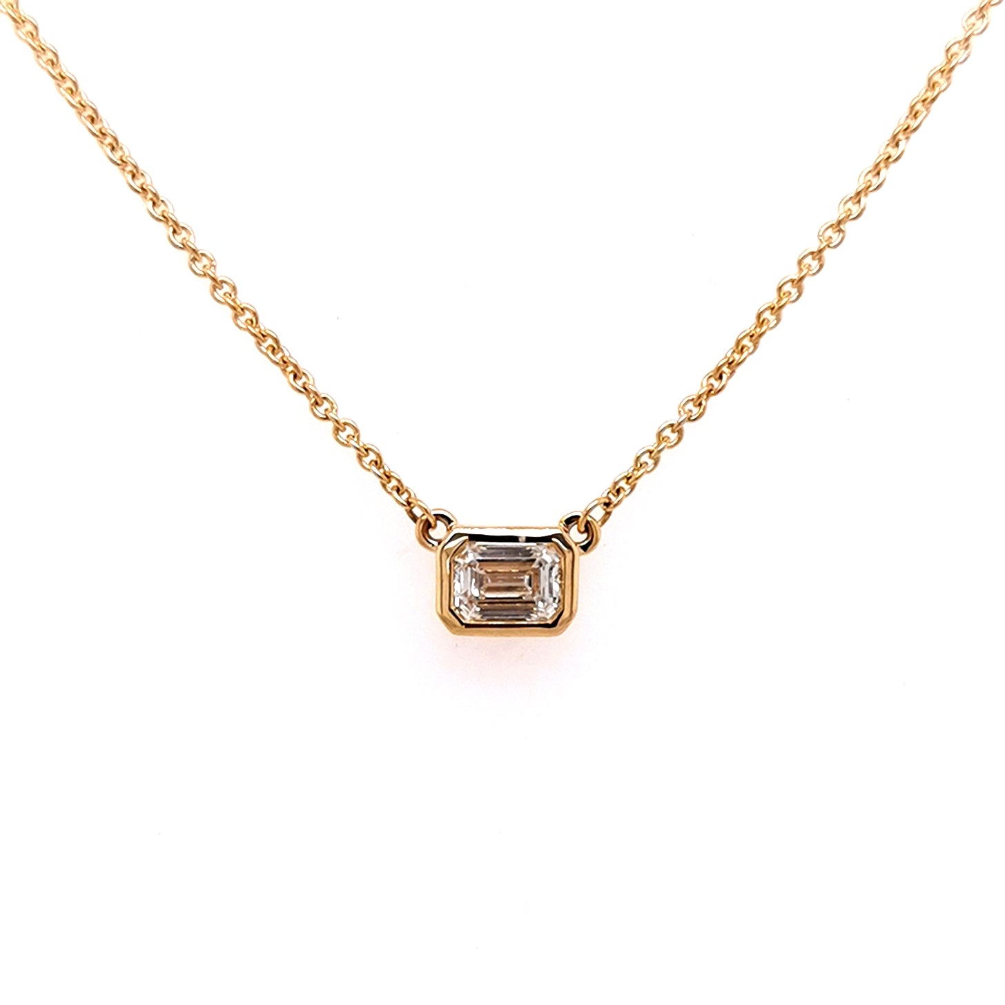 18YG BEZEL SET NECKLACE SET WITH EMERALD CUT 1=0.30CT DEF VS **18YG ITALIAN CHAIN ADJUSTABLE 42-45CM**