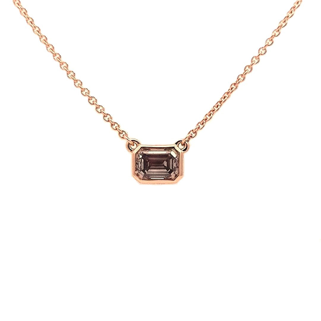 18YG BEZEL SET NECKLACE SET WITH CHAMPAGNE EMERALD CUT 1=0.54CT C3 VVS2 (2305068) SGL, APPROX 5.15 x 3.80MM **18YG ITALIAN CHAIN ADJUSTABLE 42-45CM**