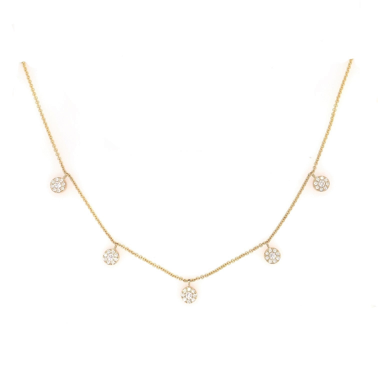 9YG PAVE ROUND SWINGING NECKLACE SET WITH RBC 45=0.35CT WH PQ **9YG ITALIAN CHAIN ADJUSTABLE 42-45CM**