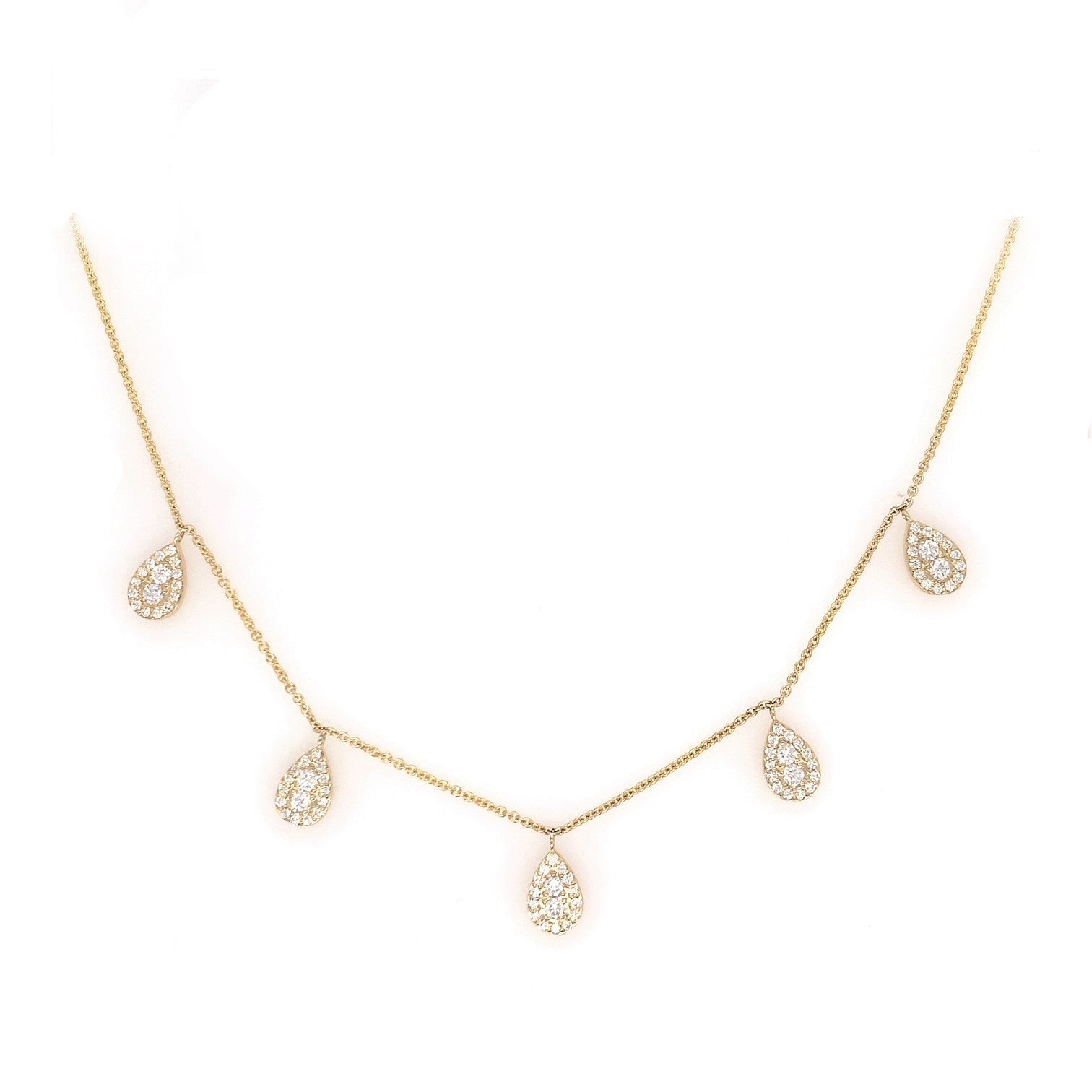 9YG PAVE PEAR SHAPED SWINGING NECKLACE SET WITH RBC 80=0.70CT WH PQ **9YG ITALIAN CHAIN ADJUSTABLE 42-45CM**