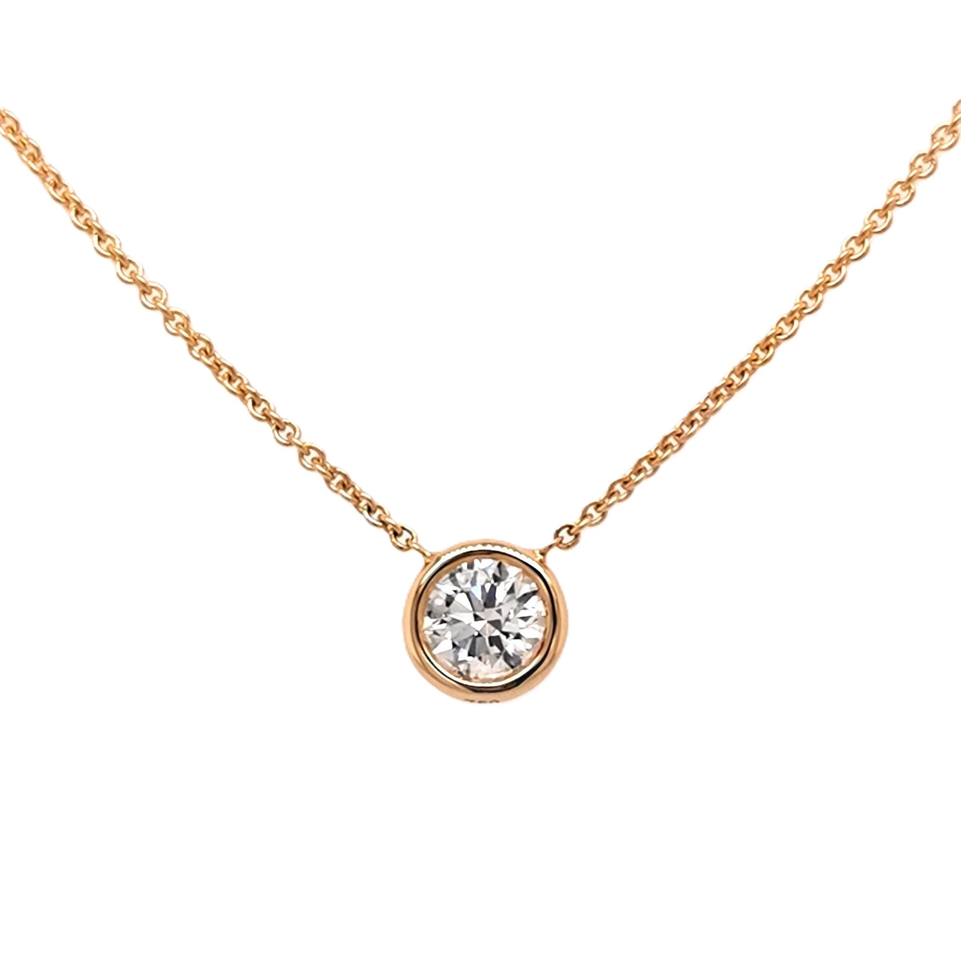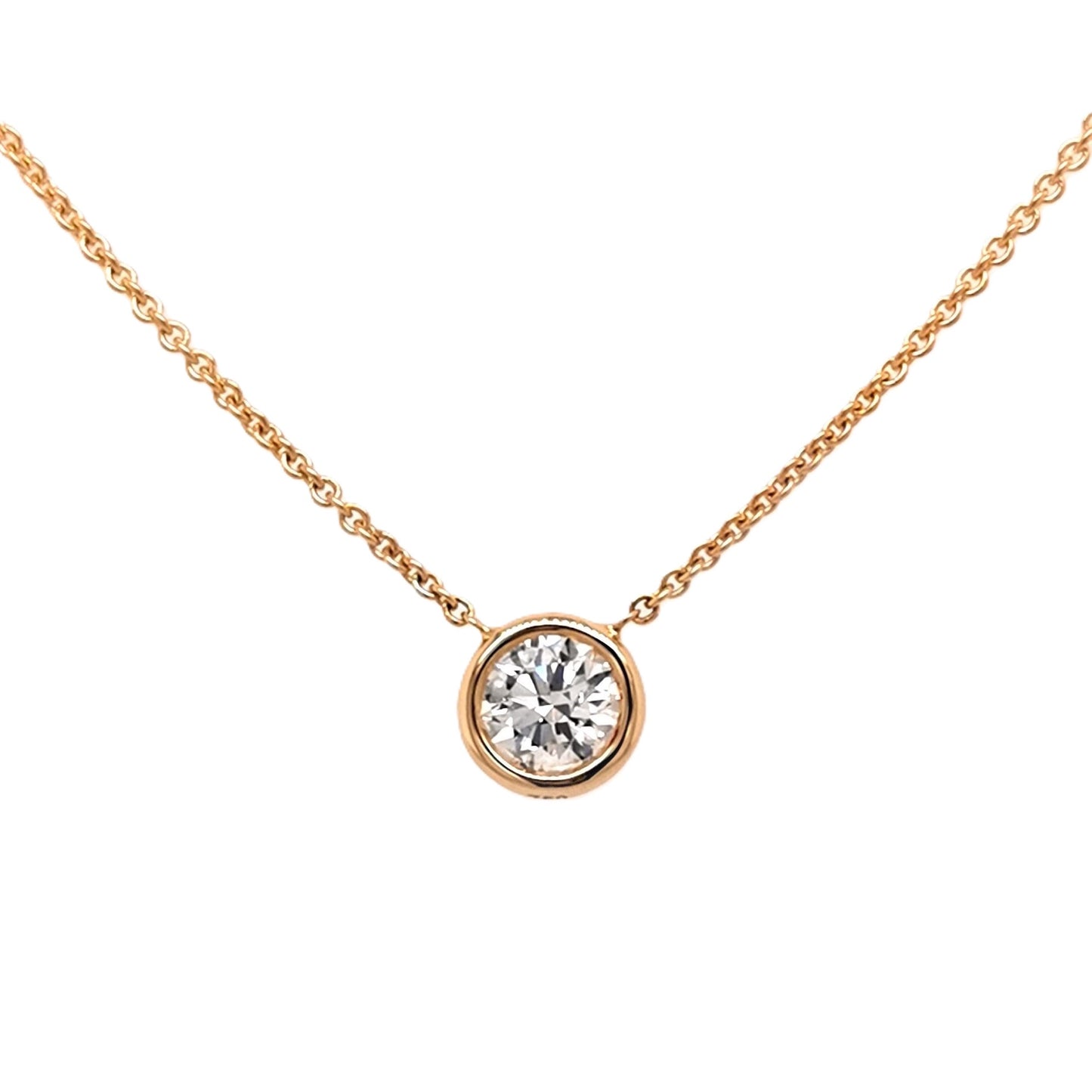 18YG FIXED FINE BEZEL SET NECKLACE WITH RBC1=0.52CT G SI2 (2304117) GIA **18YG ITALIAN CHAIN ADJUSTABLE 42-45CM**