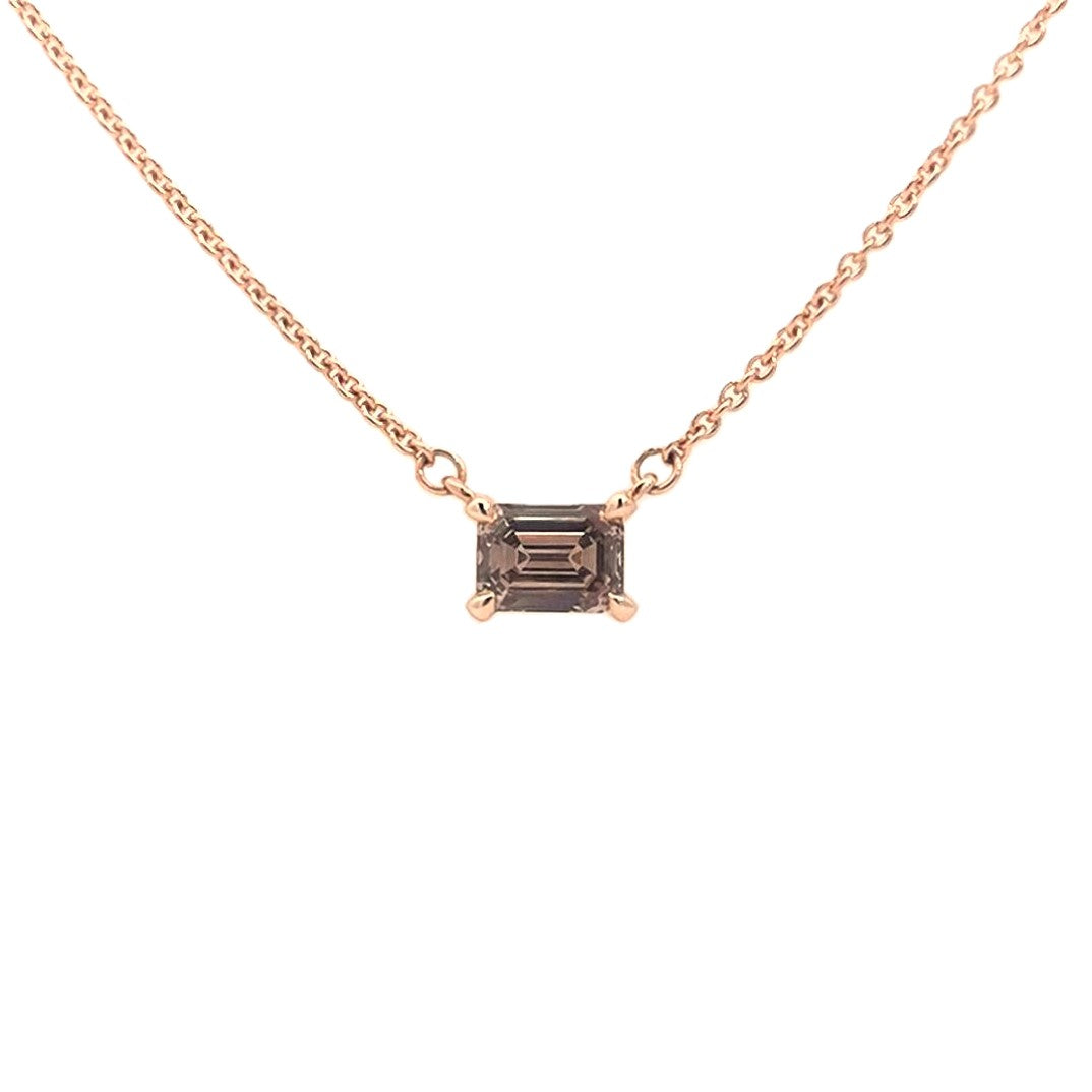 18YG 4 CLAW NECKLACE SET WITH CHAMPAGNE EMERALD CUT 1=0.51CT C3 VS2 (2305068) SGL, APPROX 5.15 X 3.80 **18YG ITALIAN CHAIN ADJUSTABLE 42-45CM**