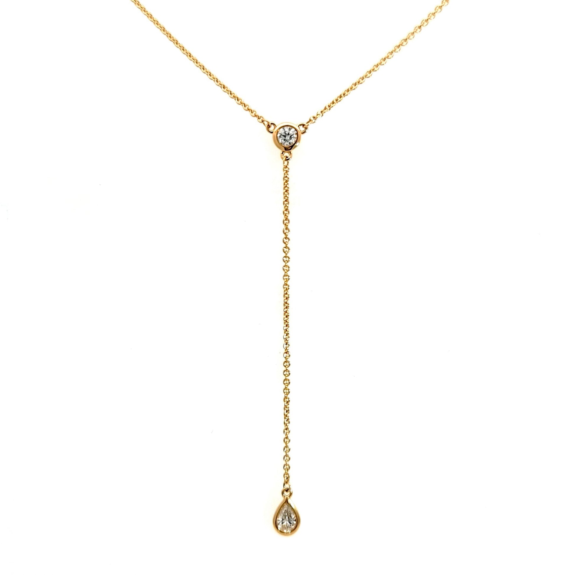 18YG Y-DROP BEZEL SET NECKLACE WITH RBC 1=0.09CT DEF SI1-2+ & PEAR 1=0.16CT FG VS-SI1+ **18YG ITALIAN CHAIN ADJUSTABLE 42-45CM**