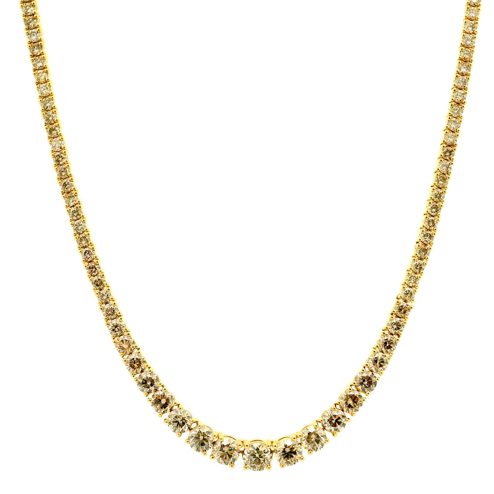 18YG 4 CLAW GRADUATED TENNIS NECKLACE SET WITH CHAMPAGNE RBC 184=8.36CT C3-4. APPROX 42.5CM
