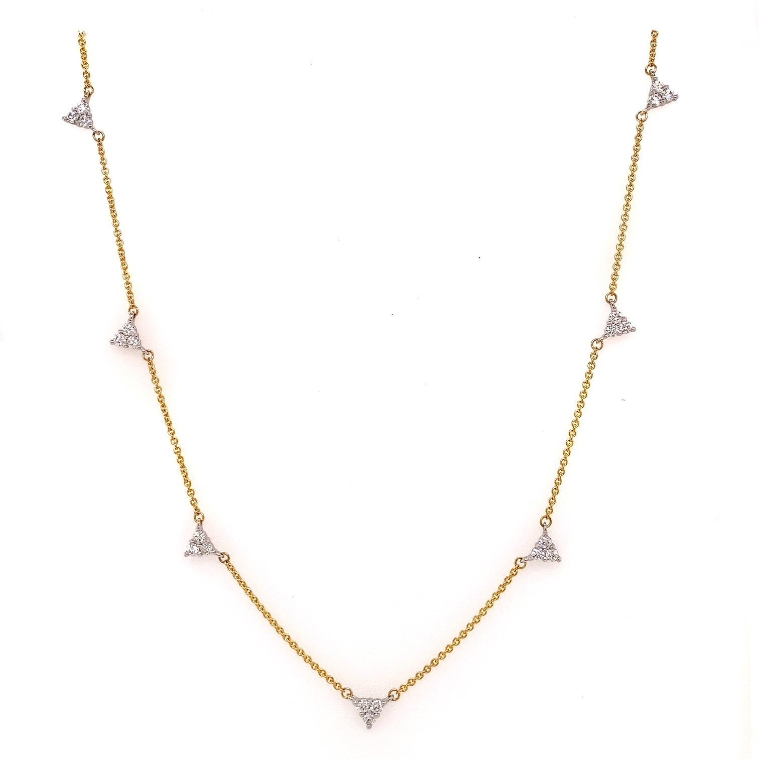 9YWG THREE DIAMOND TRIANGLE NECKLACE SET WITH RBC 21=0.50CT WH PQ **WG SETTING*YG CHAIN** 9YG ITALIAN CHAIN ADJUSTABLE 42-45CM**