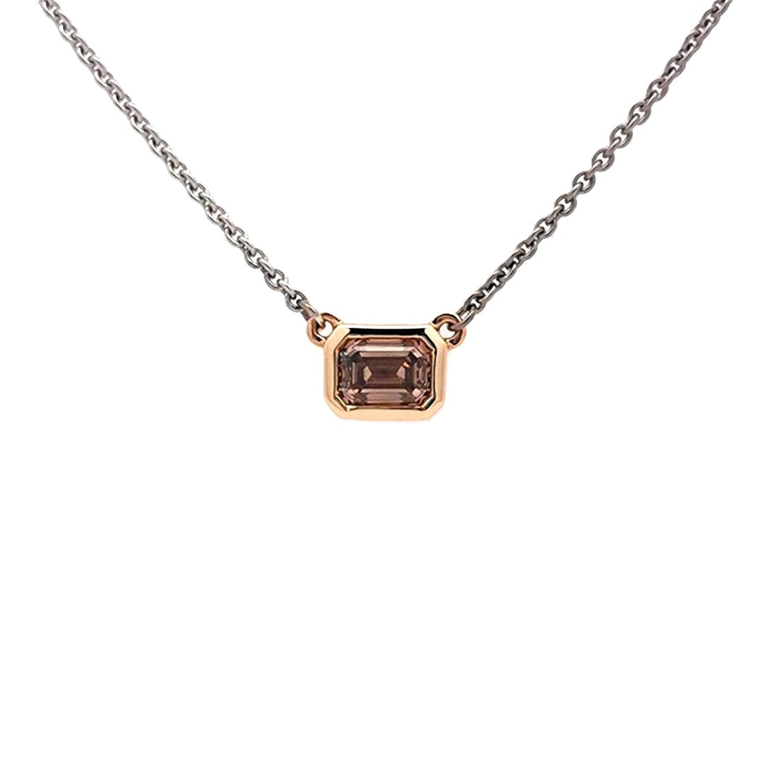 18YG BEZEL SET NECKLACE SET WITH CHAMPAGNE EMERALD CUT 1=0.32CT C3 VS1 (2204389) AOR **18WG ITALIAN CHAIN ADJUSTABLE 42-45CM**