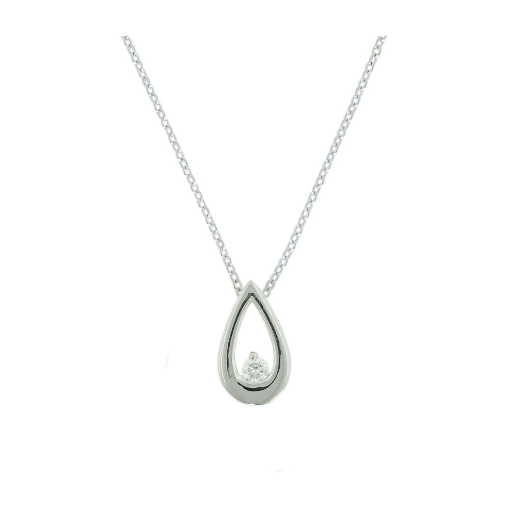 9WG TEAR DROP SHAPED PENDANT SET WITH RBC 1=0.05CT WH PQ **9WG ITALIAN CHAIN ADJUSTABLE 40-45CM CHAIN**