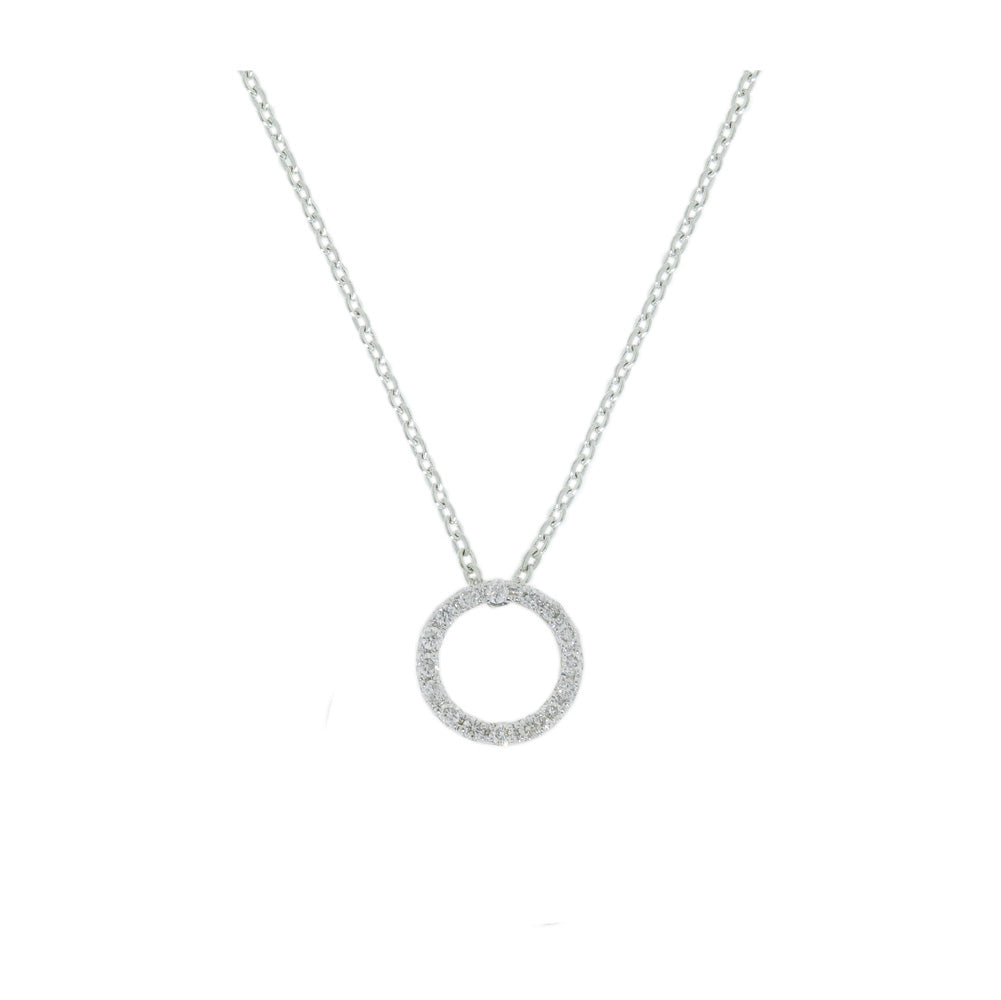 9WG 7MM CLAW SET CIRCLE PENDANT NECKLACE SET WITH RBC 16=0.06CT WH PQ **9WG ITALIAN CHAIN ADJUSTABLE 42CM-45CM**