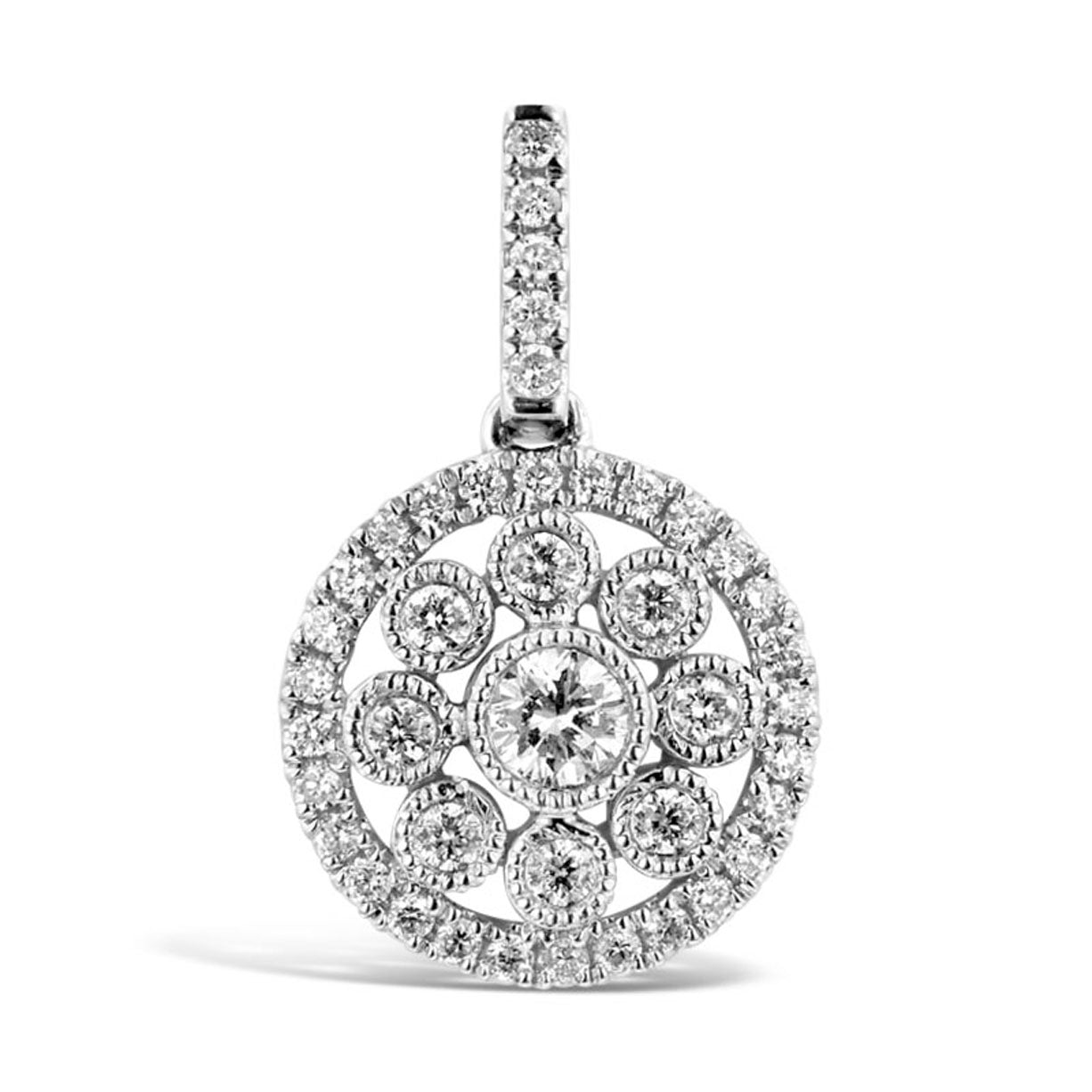9WG FLORAL CLUSTER MILLGRAIN PENDANT SET WITH RBC 42=0.25CT WH PQ