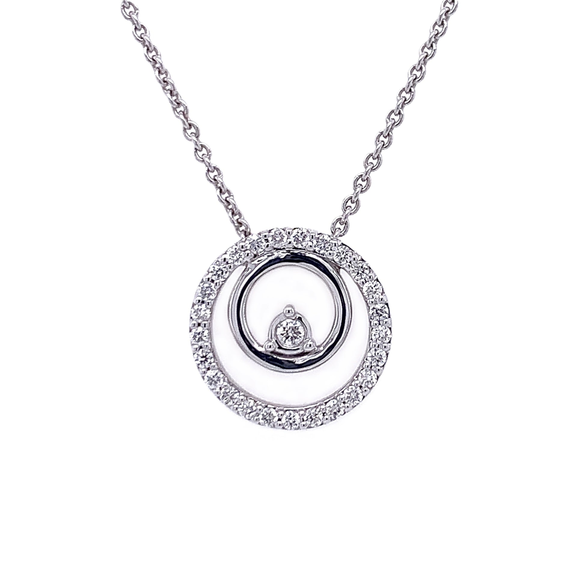 9WG 12MM DOUBLE OPEN CIRCLE PENDANT SET WITH RBC 26=0.13CT WH PQ