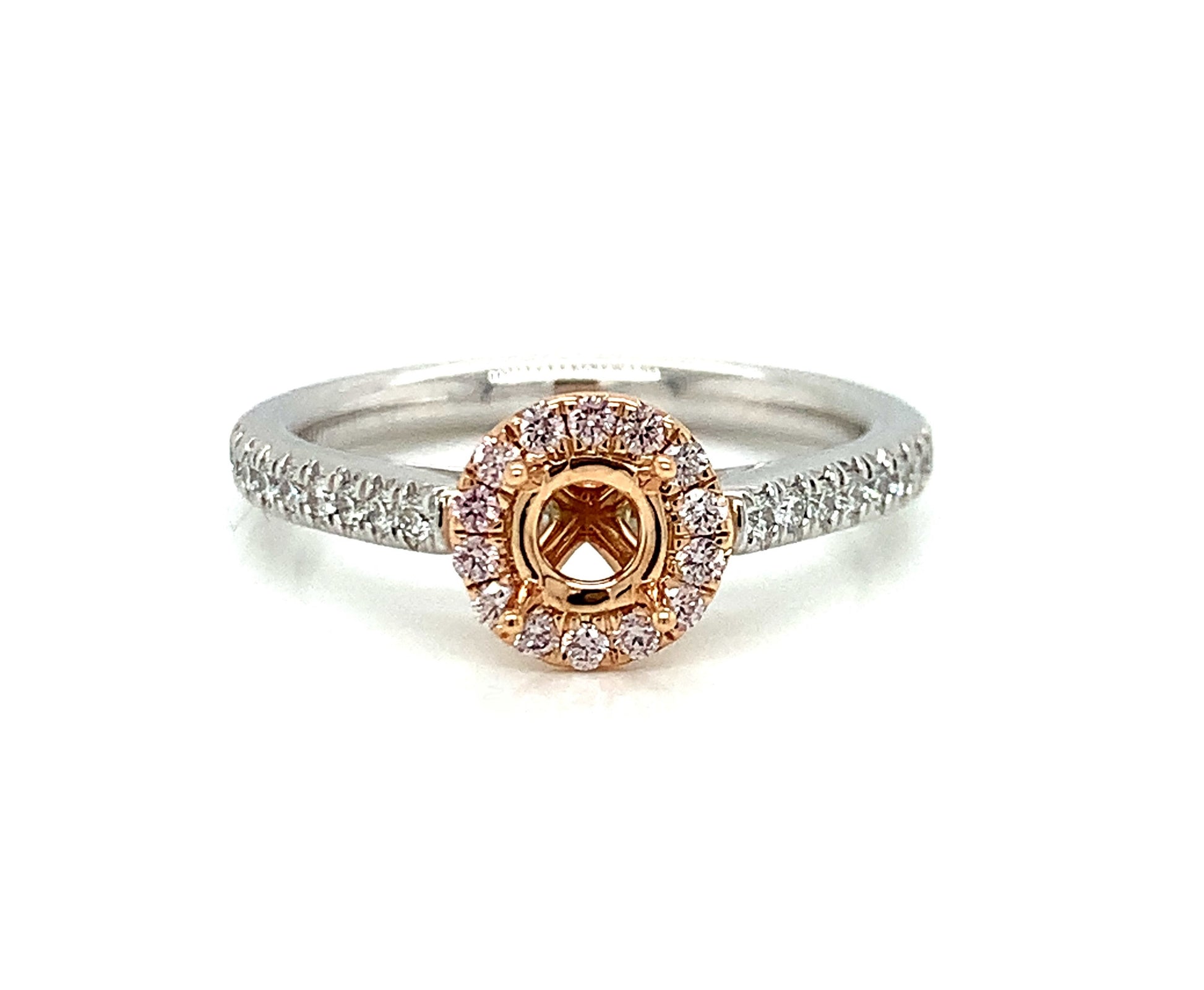 **DNO - 2 LEFT**PT950/18RG HALO SEMI-MOUNT RING SET WITH SHOULDER RBC 22=0.20CT DEF VS-SI & HALO RBC 14=0.13CT 8-9P/PR ARGYLE LOT#459407 TO TAKE APPROX 4.75MM RBC CTR **PT SHANK, RG HALO** EXCLUDES S&F**