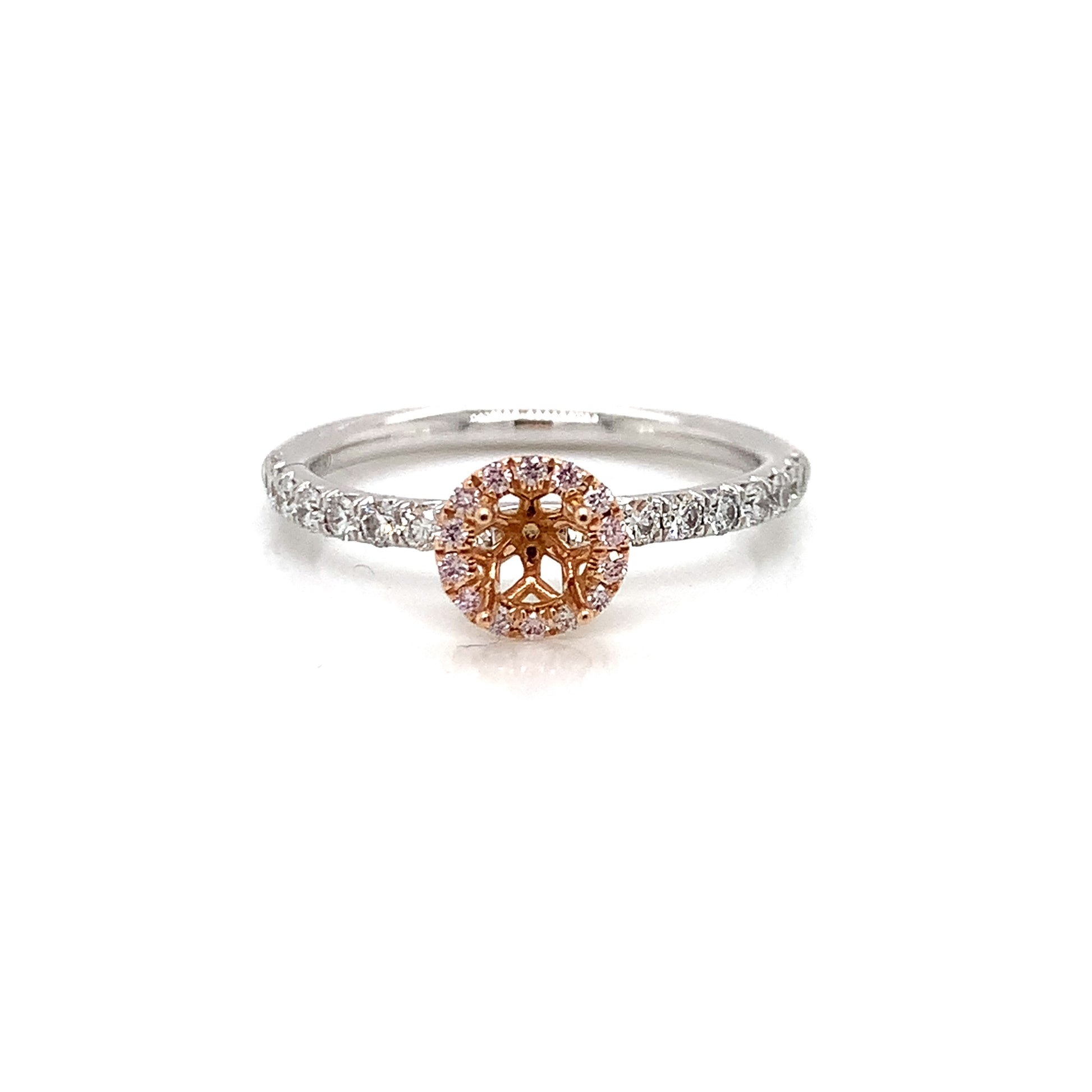 **LAST ONE**PT950/18RG HALO SEMI-MOUNT RING SET WITH RBC 16=0.30CT DEF VS-SI1+ & HALO RBC 14=0.06CT 8-9P/PR ARGYLE LOT#459495 TO TAKE 4.20MM RBC CENTRE **RG SETTING, PT SHANK** EXCLUDES S&F**