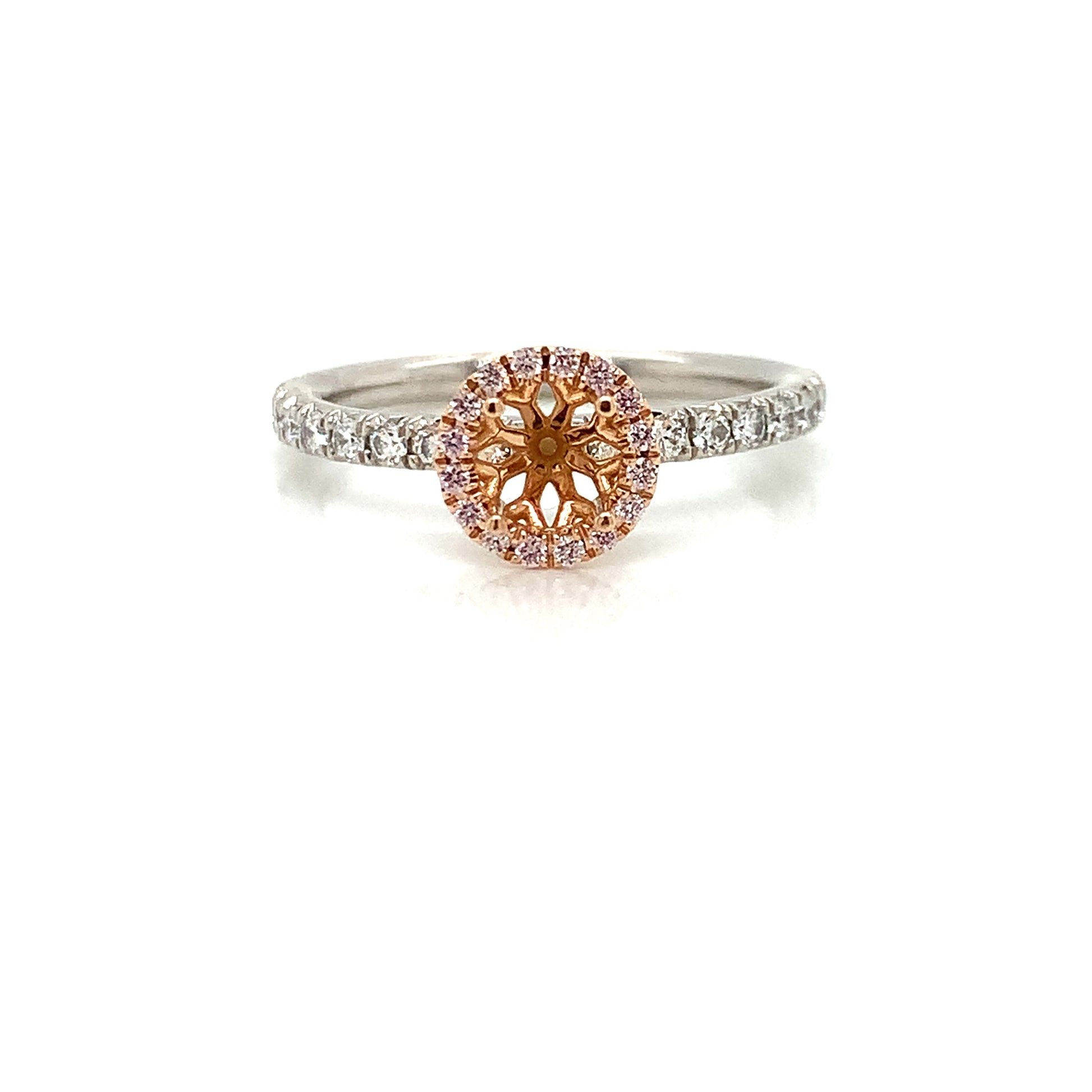 **DNO - 3 LEFT**PT950/18RG HALO SEMI-MOUNT RING WITH SHOULDER DIAMONDS SET WITH RBC 16=0.28CT DEF VS-SI1+ & HALO RBC 16=0.07CT 8-9P/PR ARGYLE LOT#459495 **PT SHANK*RG SETTING** EXCLUDES S&F**