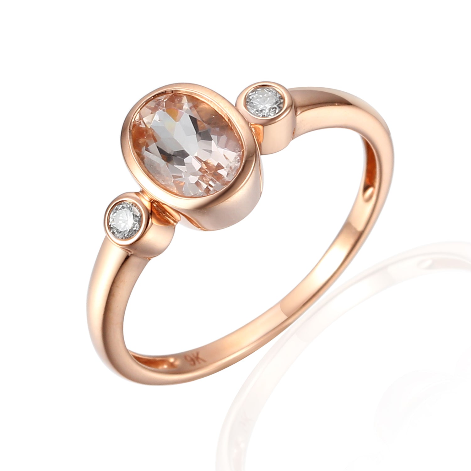 9RG 7x5MM OVAL BEZEL SET MORGANITE-BERYL AND RBC 2=0.08CT WH PQ