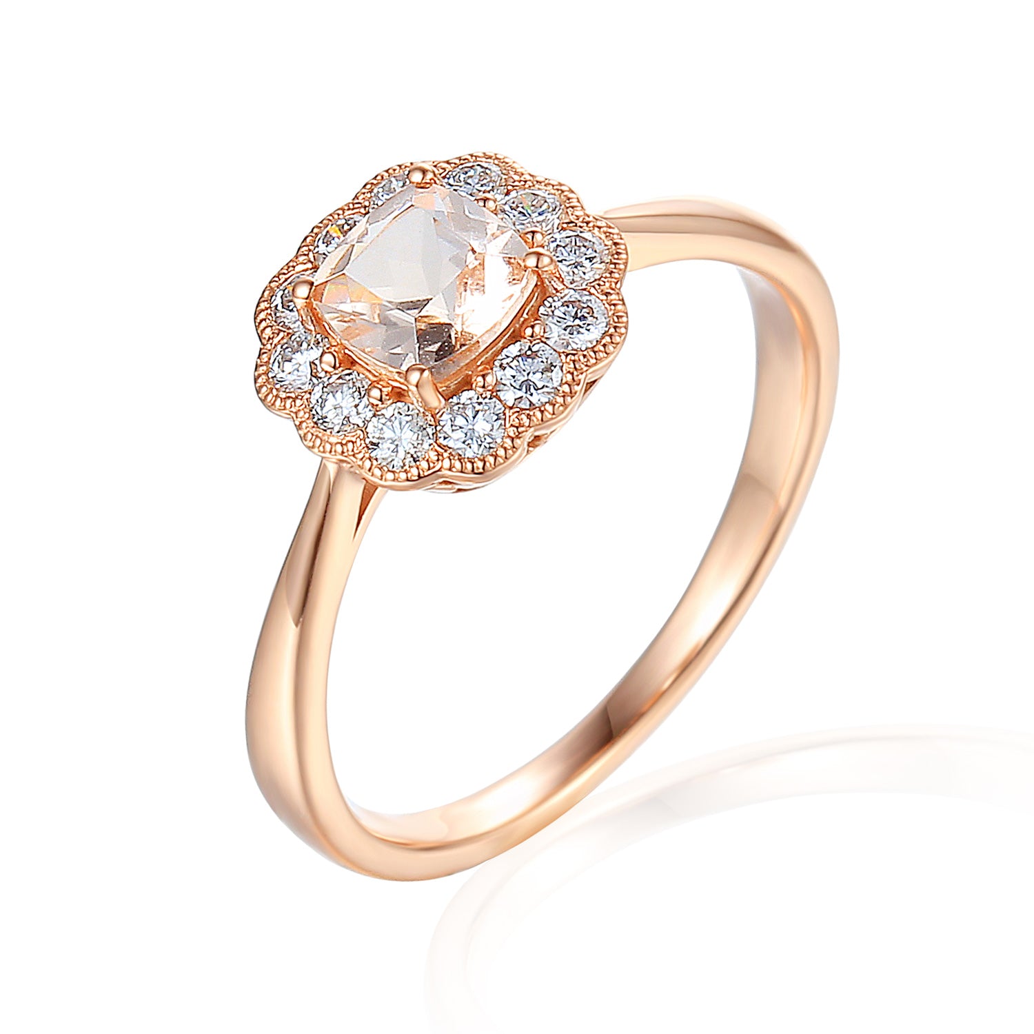 **LAST ONE** 9RG 5MM CUSHION SHAPE MORGANITE-BERYL RING WITH HALO SET WITH RBC 12=0.25CT WH PQ