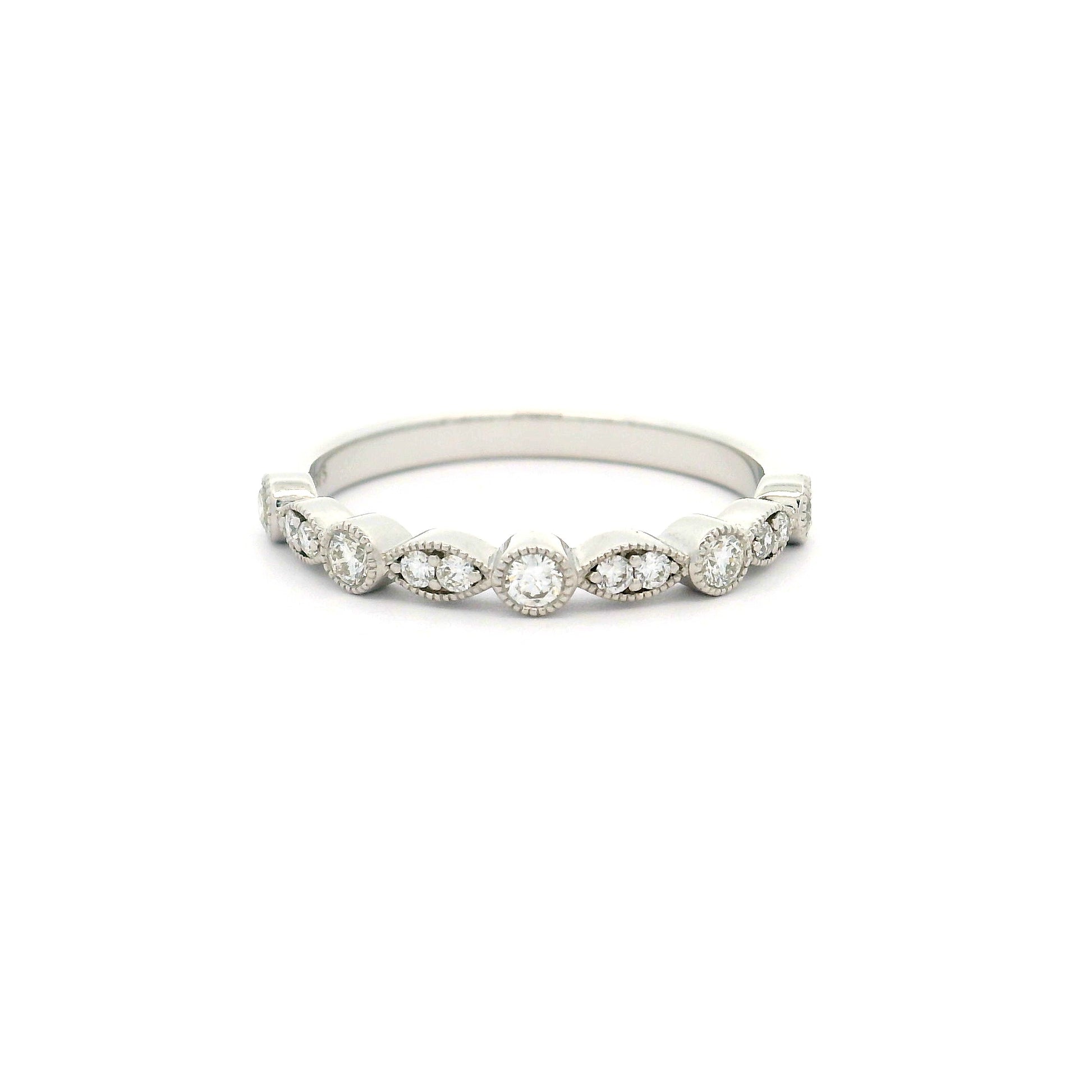 9RG ALTERNATING ROUND AND MARQUISE SHAPED MILLGRAIN RING SET WITH RBC 13=0.25CT WH PQ