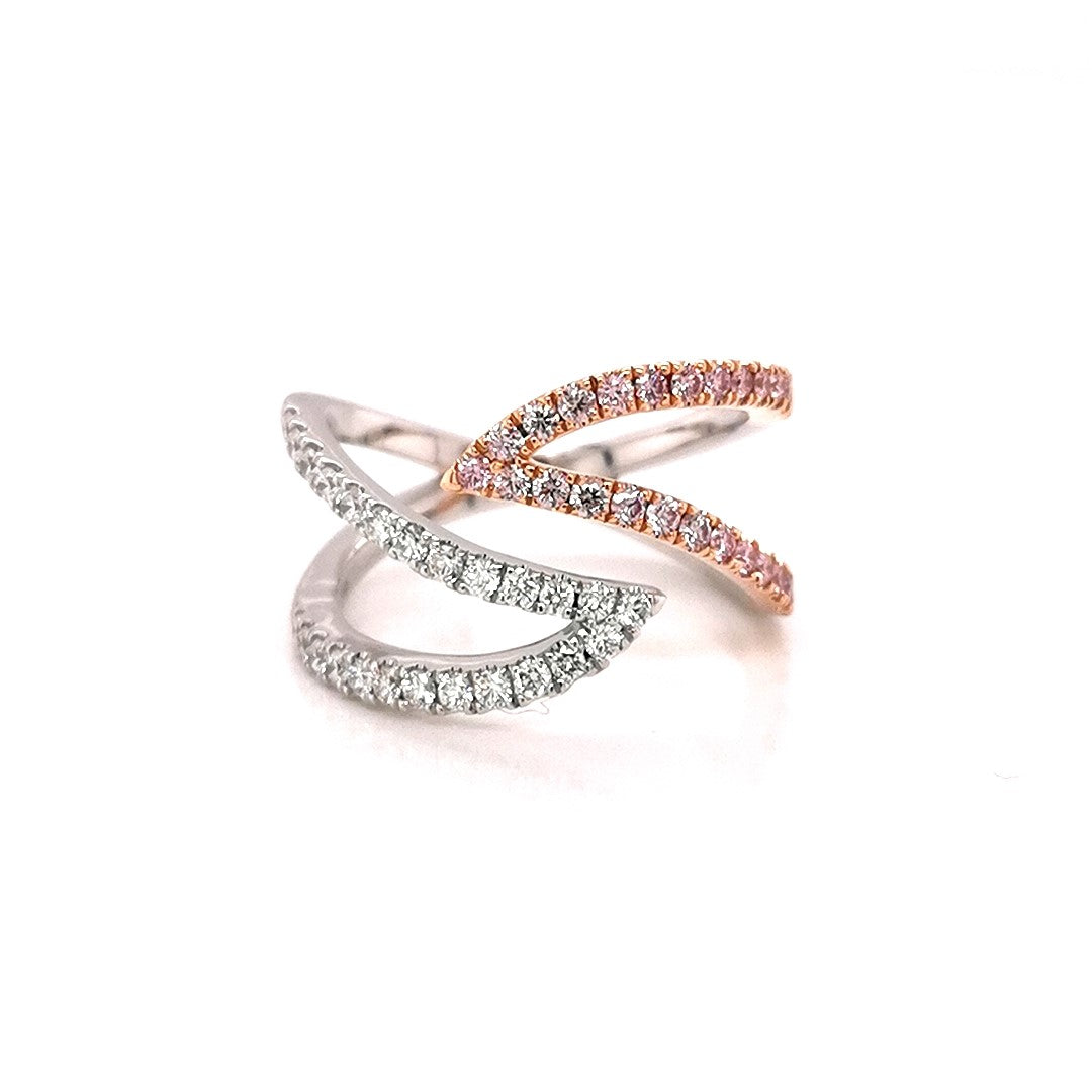 LAST ONE** 18RWG OPEN FLAME DRESS RING SET WITH RBC 25=0.34CT DEF VS-SI1+ & RBC 25=0.34CT 6-7P/PP ARGYLE #459389