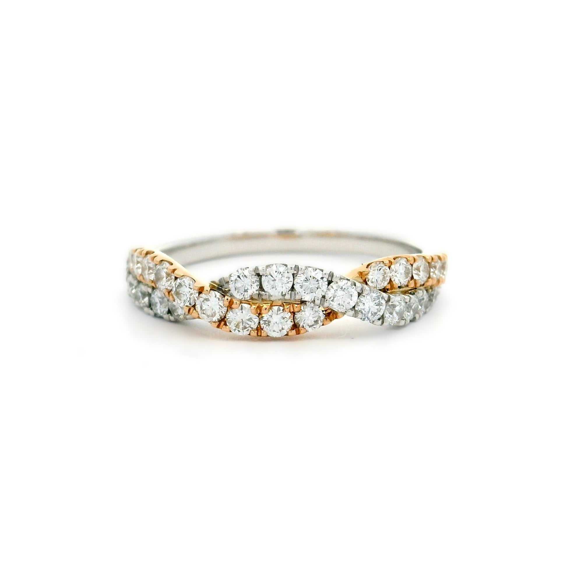 18RWG DOUBLE ROW TWIST RING SET WITH RBC 28=0.60CT WH SI **WG/RG SETTING WG SHANK**