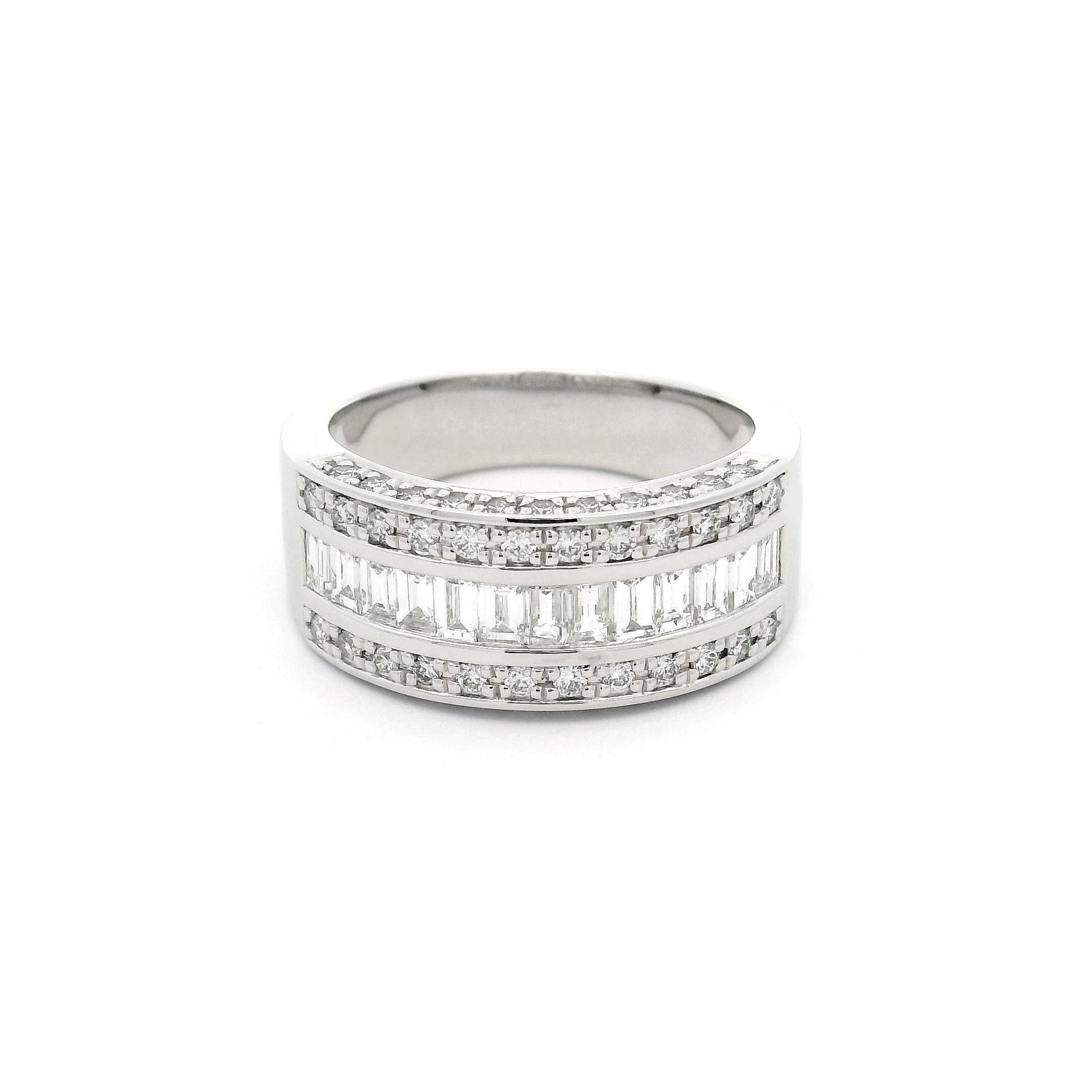 18WG CHANNEL GRAIN SET RING WITH BAGUETTE AND RBC 60=1.25ct WH VS-SI