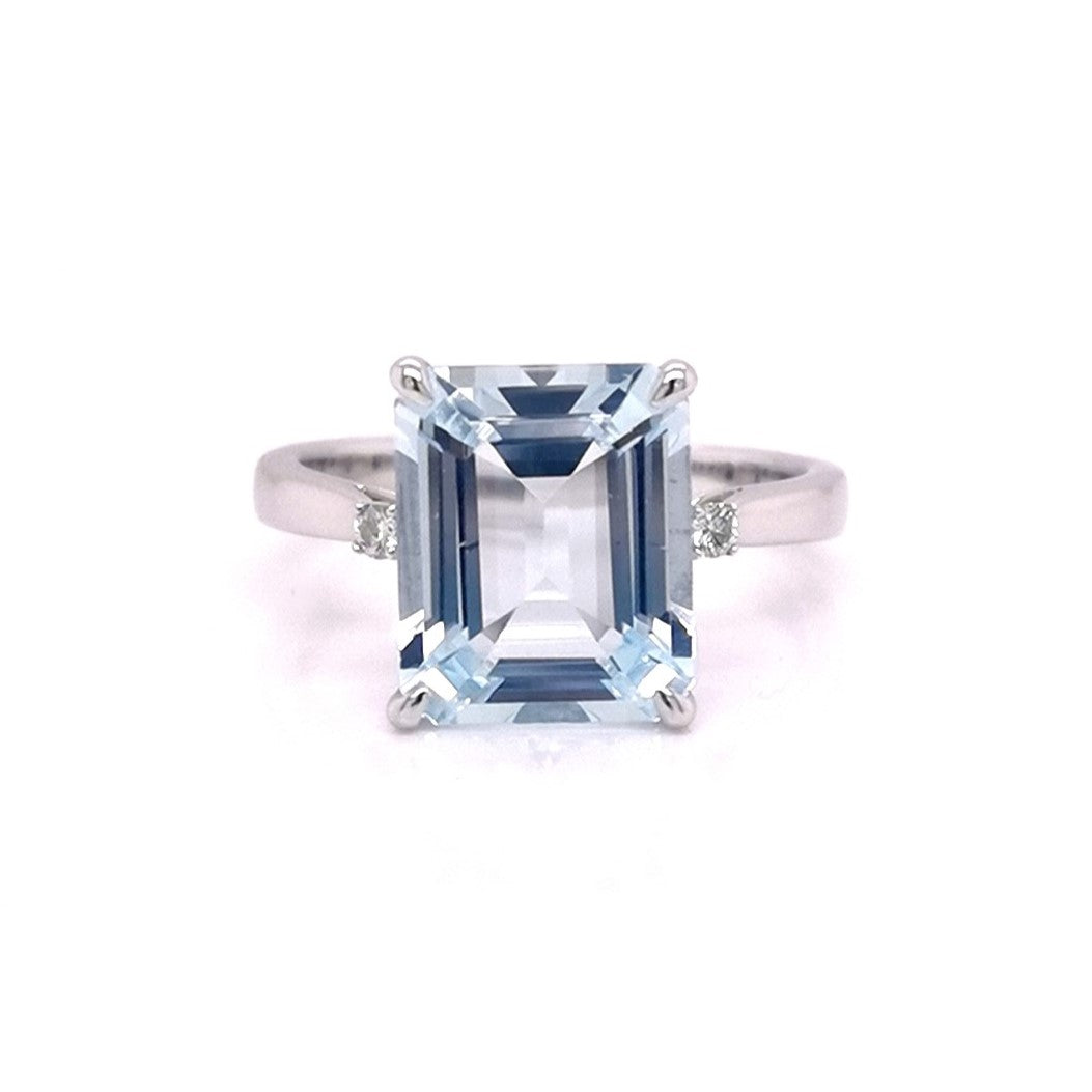 9WG 11X9MM EMERALD CUT AQUAMARINE RING SET WITH RBC 2=0.04CT WH PQ