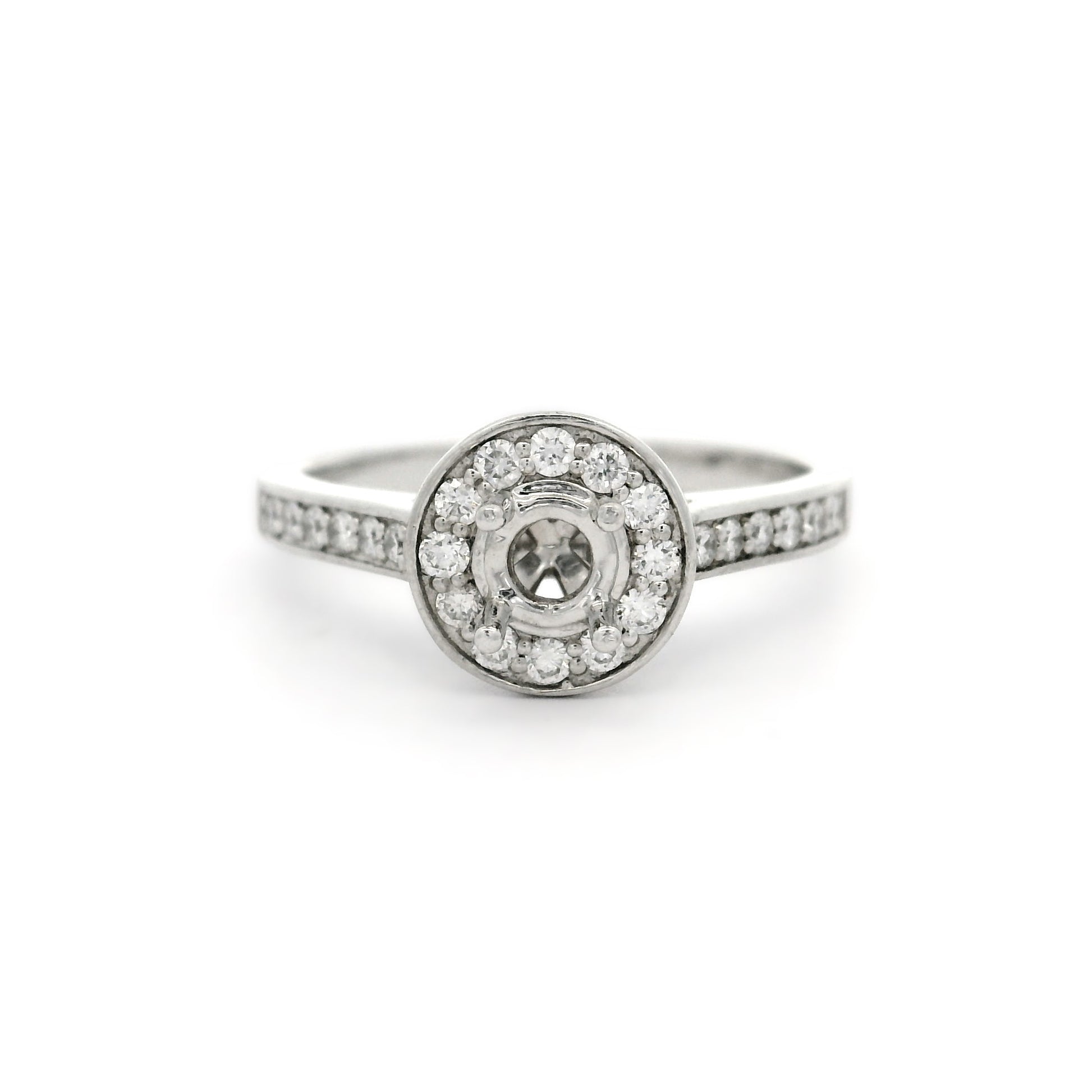 18WG SINGLE HALO GRAIN SET SEMI-MOUNT WITH RBC 24=0.26CT WH SI TO TAKE APPROX 4.2MM (0.30CT) CTR