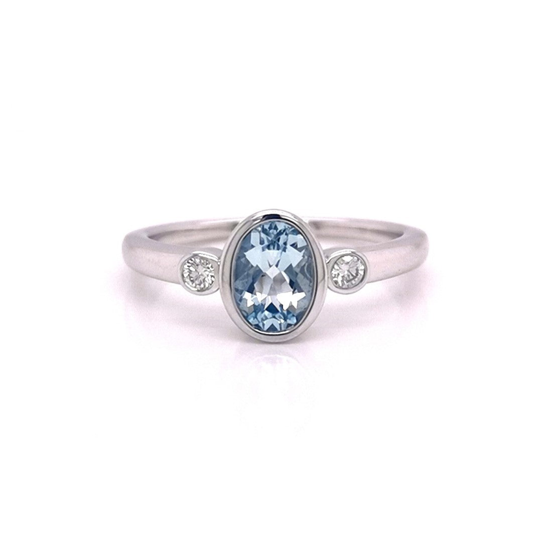 9WG 7x5MM OVAL BEZEL SET AQUAMARINE AND RBC 2=0.08CT WH PQ