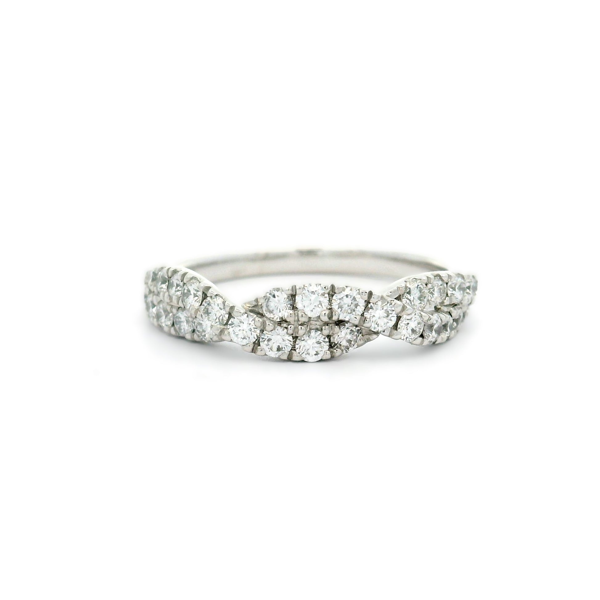 18WG DOUBLE ROW TWIST RING SET WITH RBC 28=0.60CT WH SI