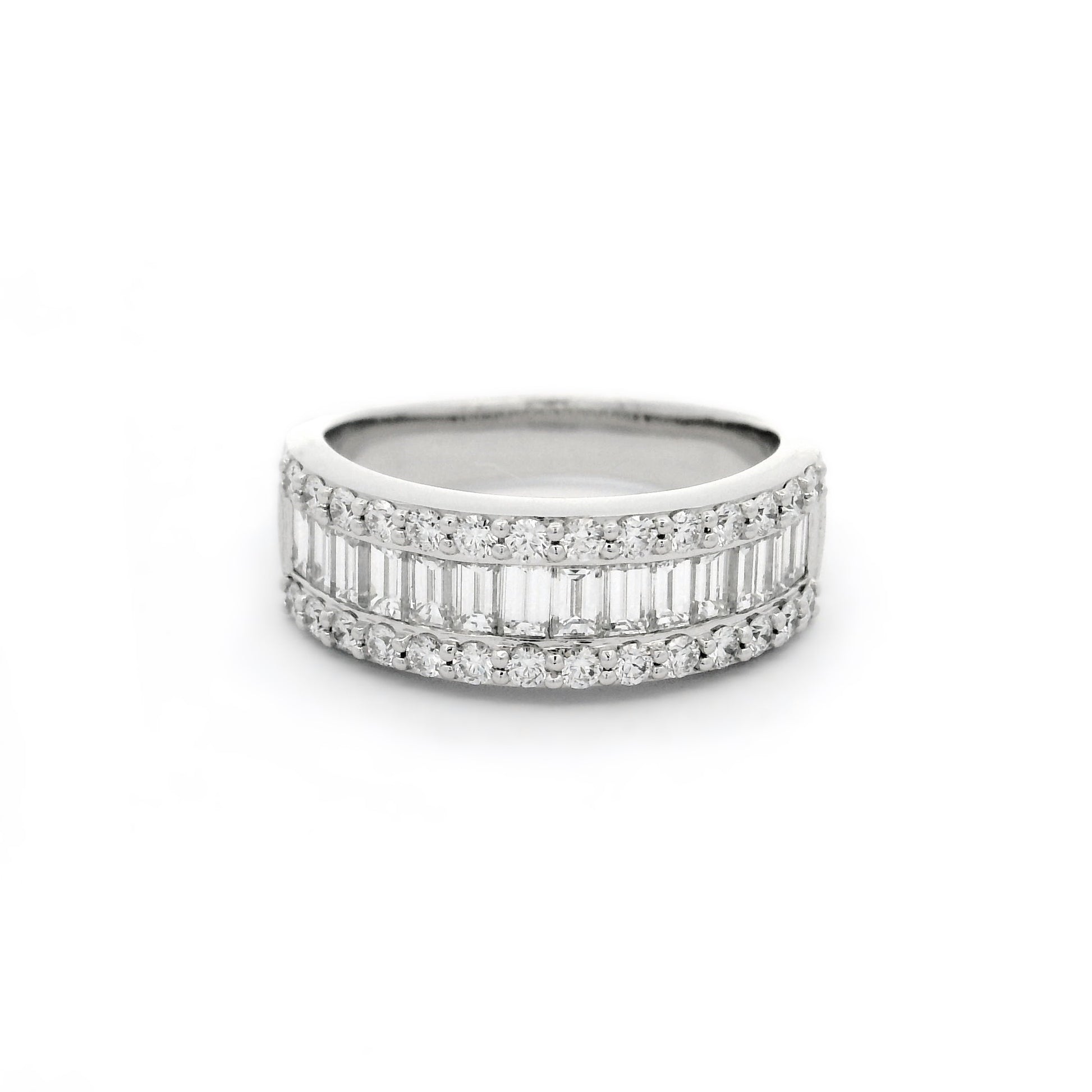 18WG DRESS RING WITH BAGUETTE CHANNEL SET & CLAW SET RBC 42-43=1.45CT EF VS+
