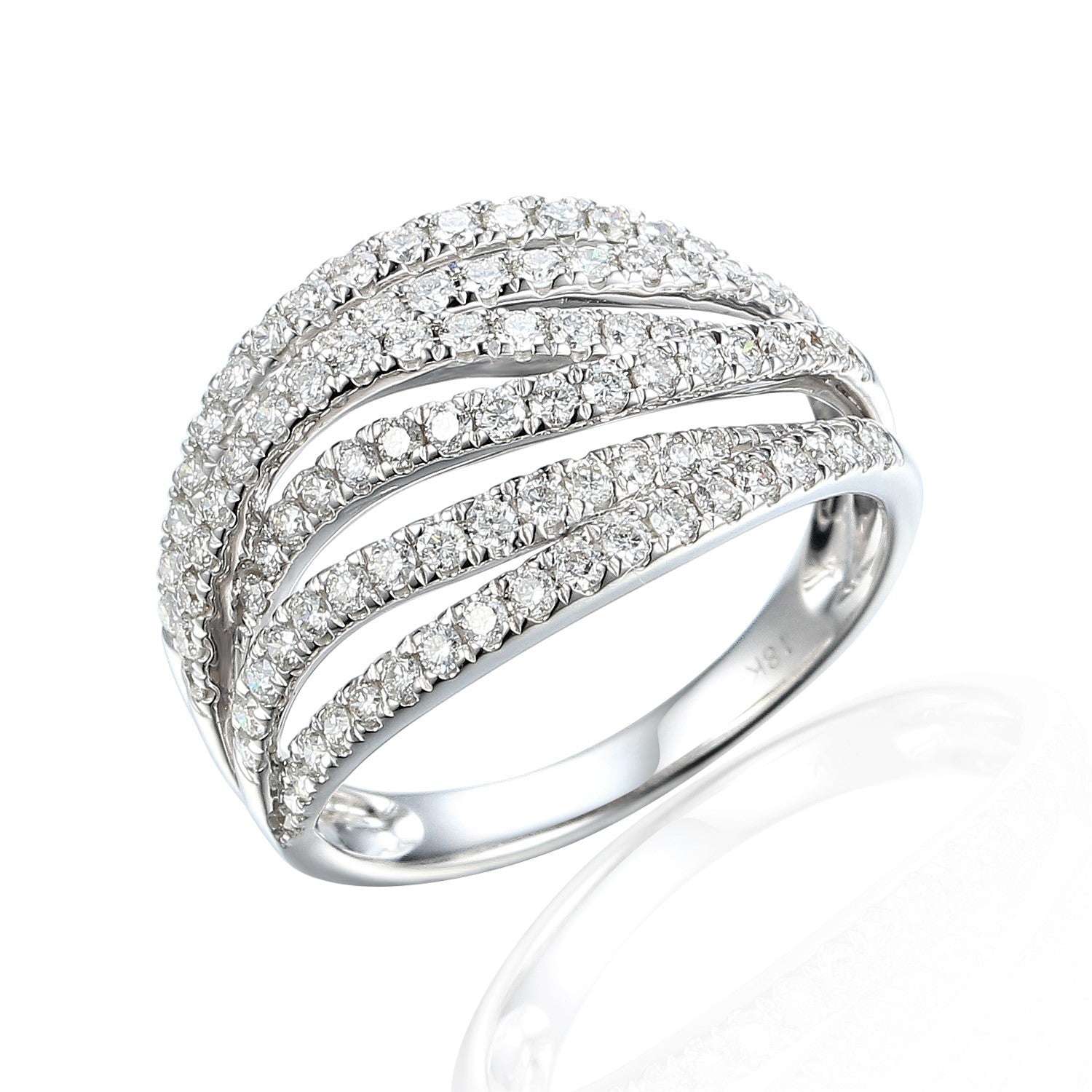 **LAST ONE** 18WG MULTI ROW SWIRL DRESS RING 100=0.85ct WH SI
