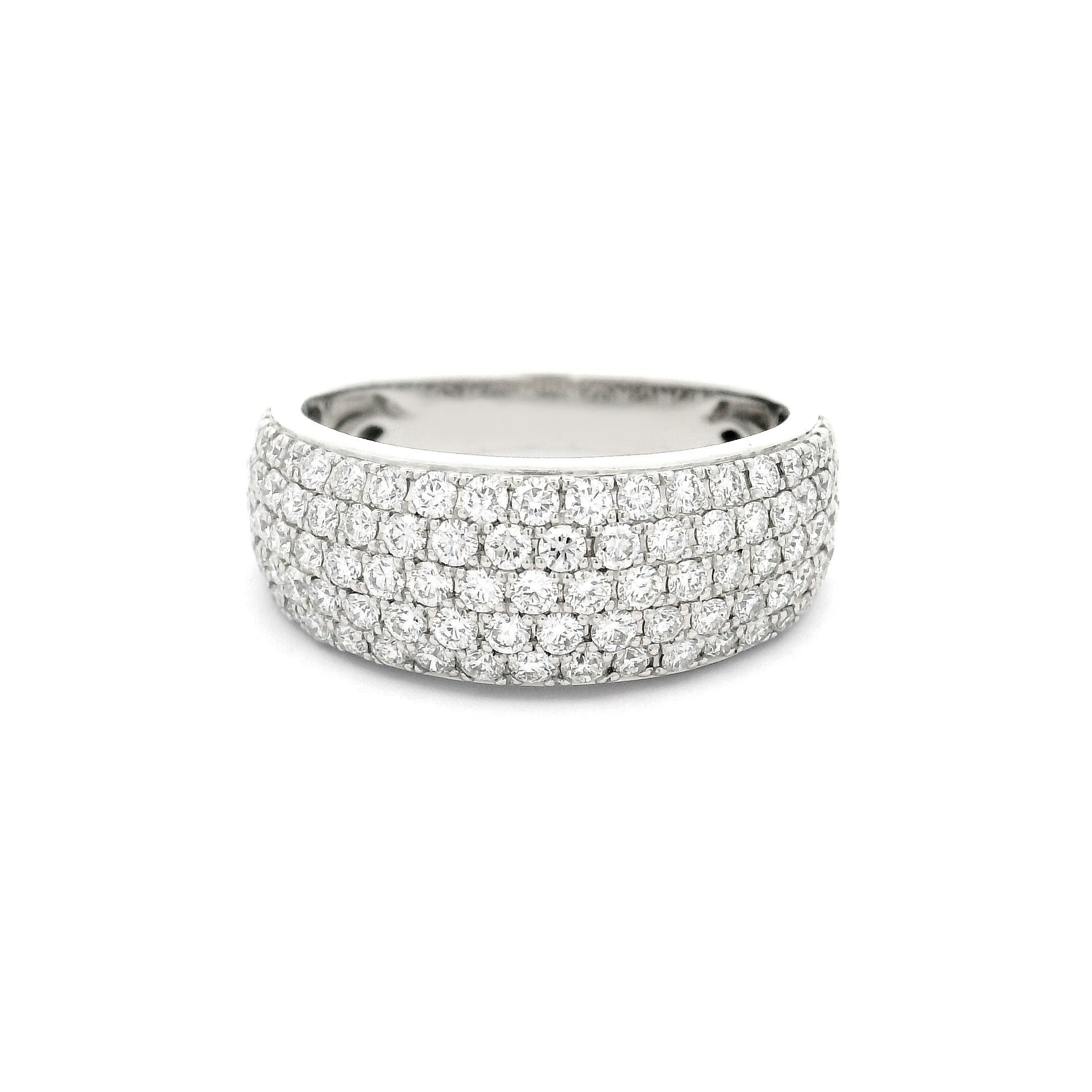 18WG 5 ROW PAVE DRESS RING, TAPERED BAND SET WITH RBC 97=1.00CT WH SI