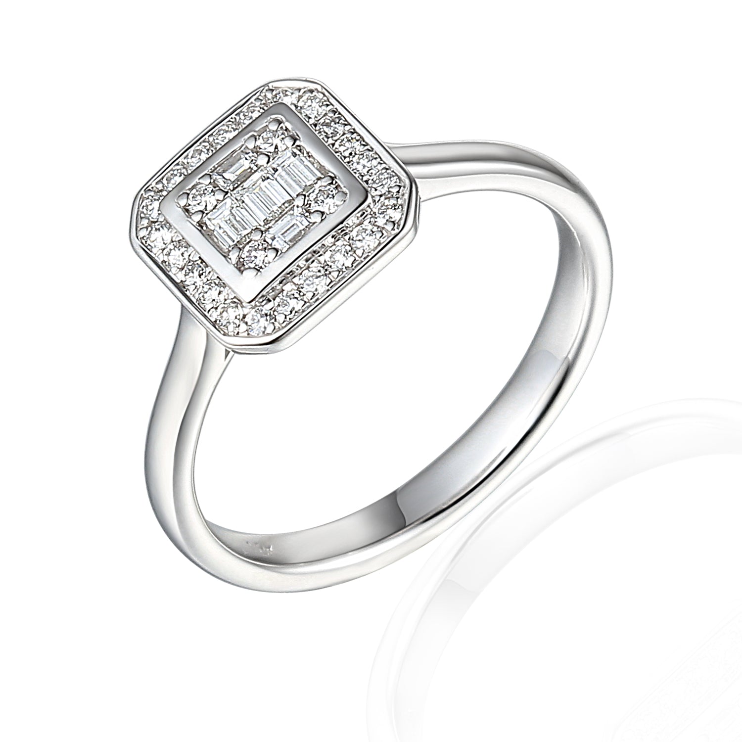 **LAST ONE** 18WG BGT DRESS RING WITH RBC HALO 31=0.30CT WH SI