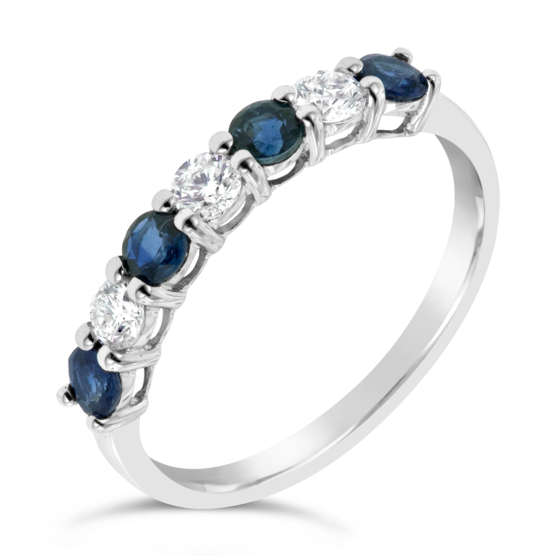 9WG ALTERNATING RING SET WITH RBC 3=0.28CT WH PQ & 3MM ROUND CUT BLUE SAPPHIRE
