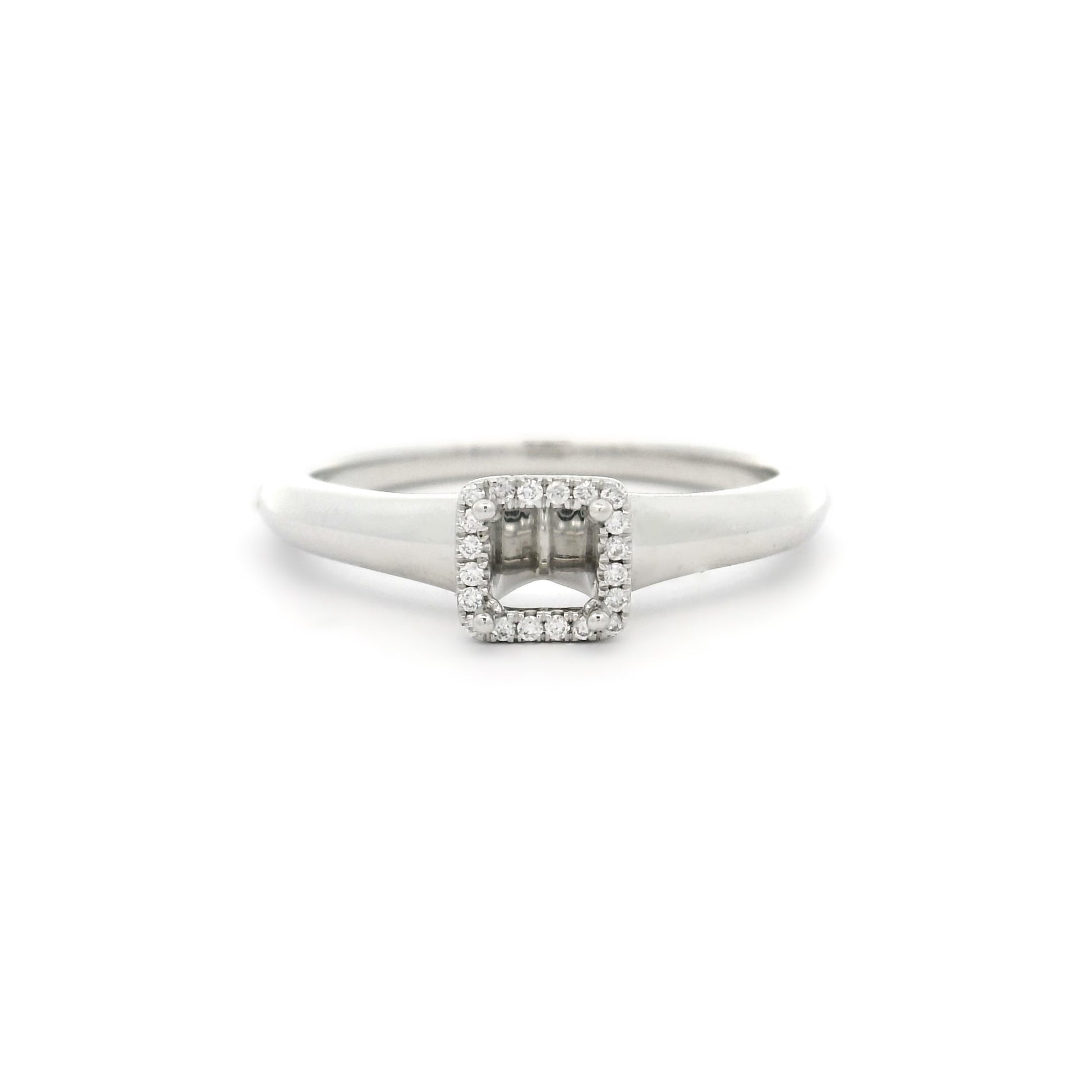18WG SEMI MOUNT FINE HALO RING WITH TAPERED BAND 20=0.05CT WH SI TO TAKE 0.30CT PRN CTR (APPROX 3.5MM) **EXCLUDES S&F**