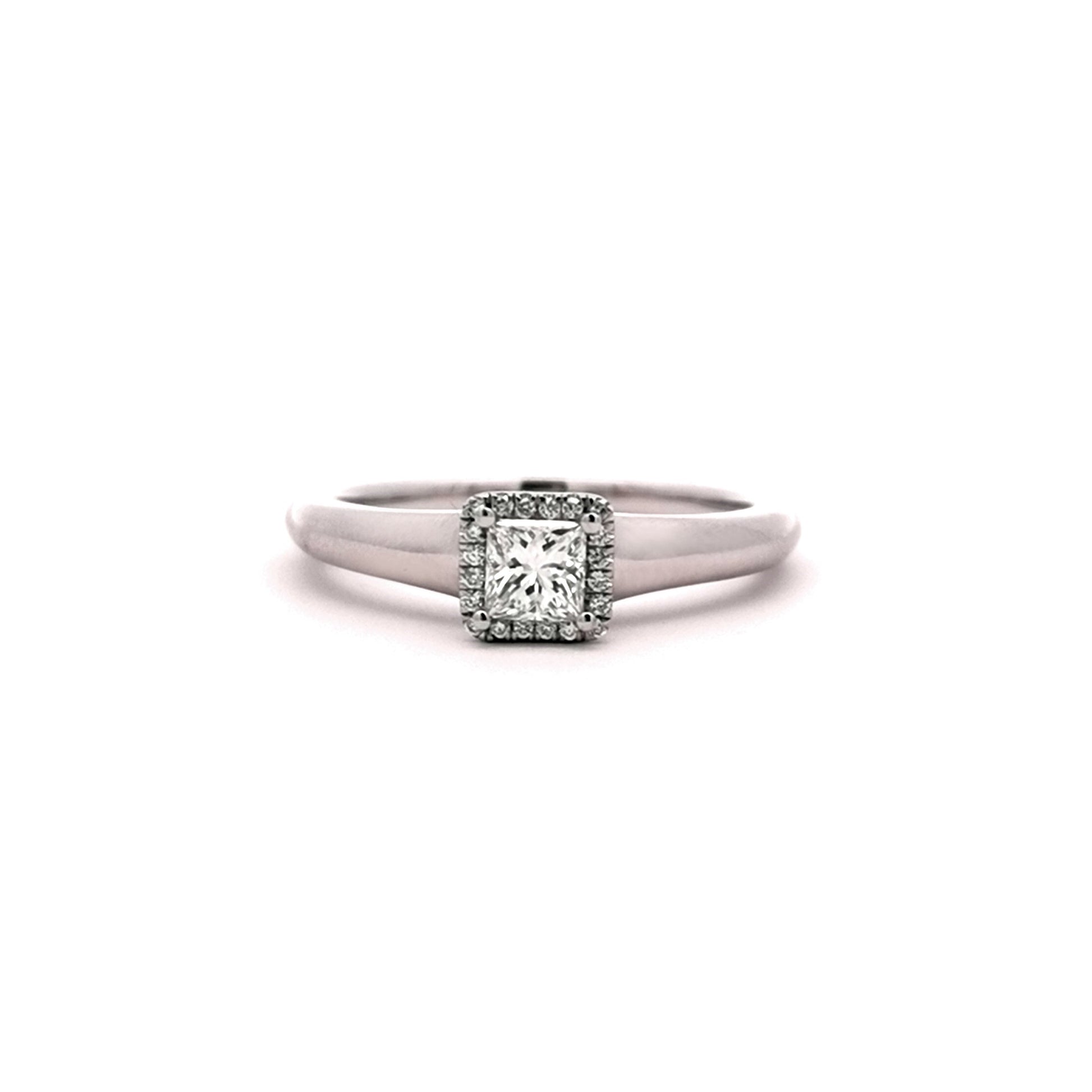 18WG FINE SQUARE HALO RING WITH TAPERED BAND SET WITH PRN 1=0.30CT FGH+SI1-2 (471) & RBC 20=0.05CT WH SI