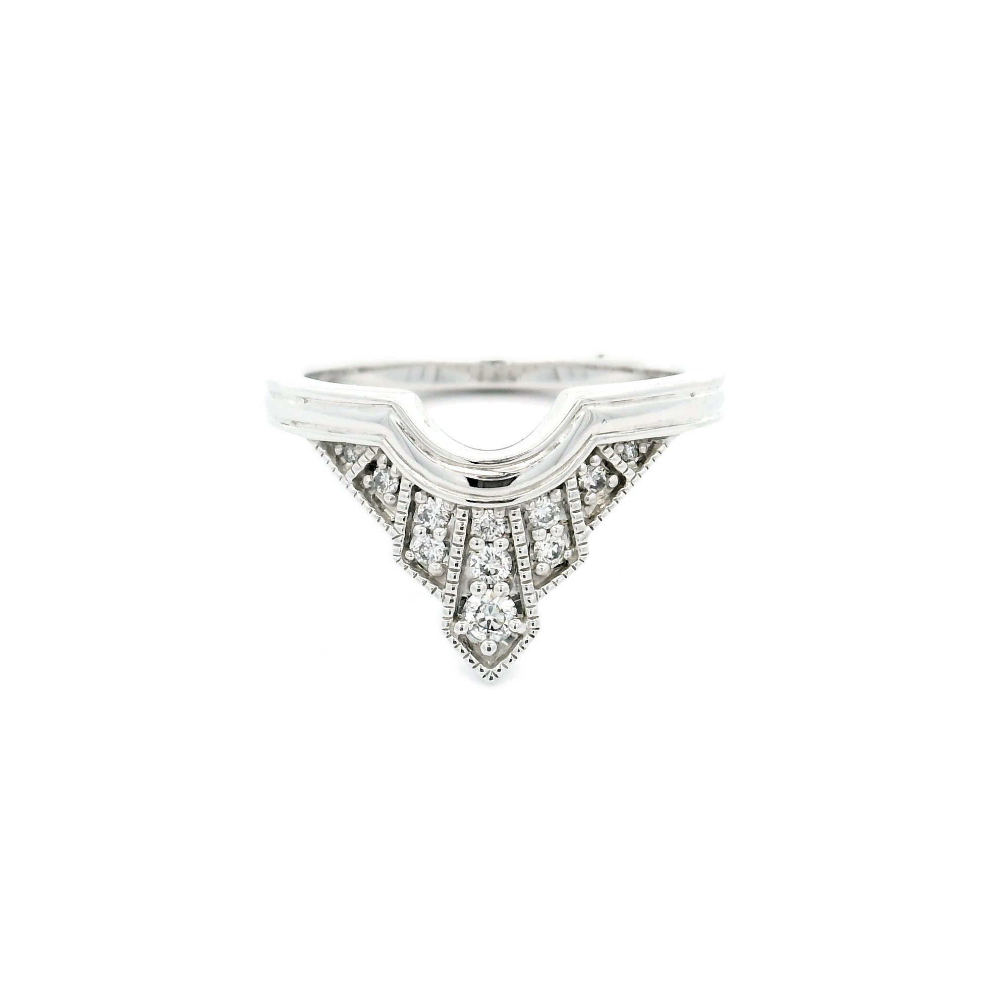 9WG ART DECO TIARA RING WITH MILLGRAIN SET WITH RBC 11=0.15CT WH PQ