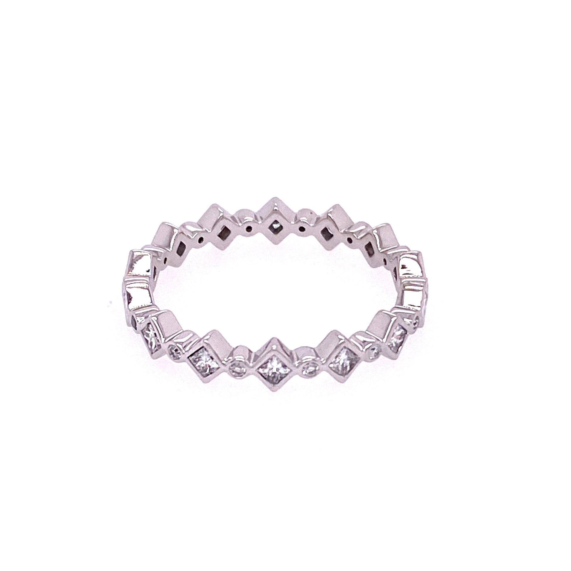 **LAST ONE - SIZE O** 18WG ETERNITY BEZEL SET DRESS RING WITH ALTERNATING PRN & ROUNDS 28=0.50ct WH SI