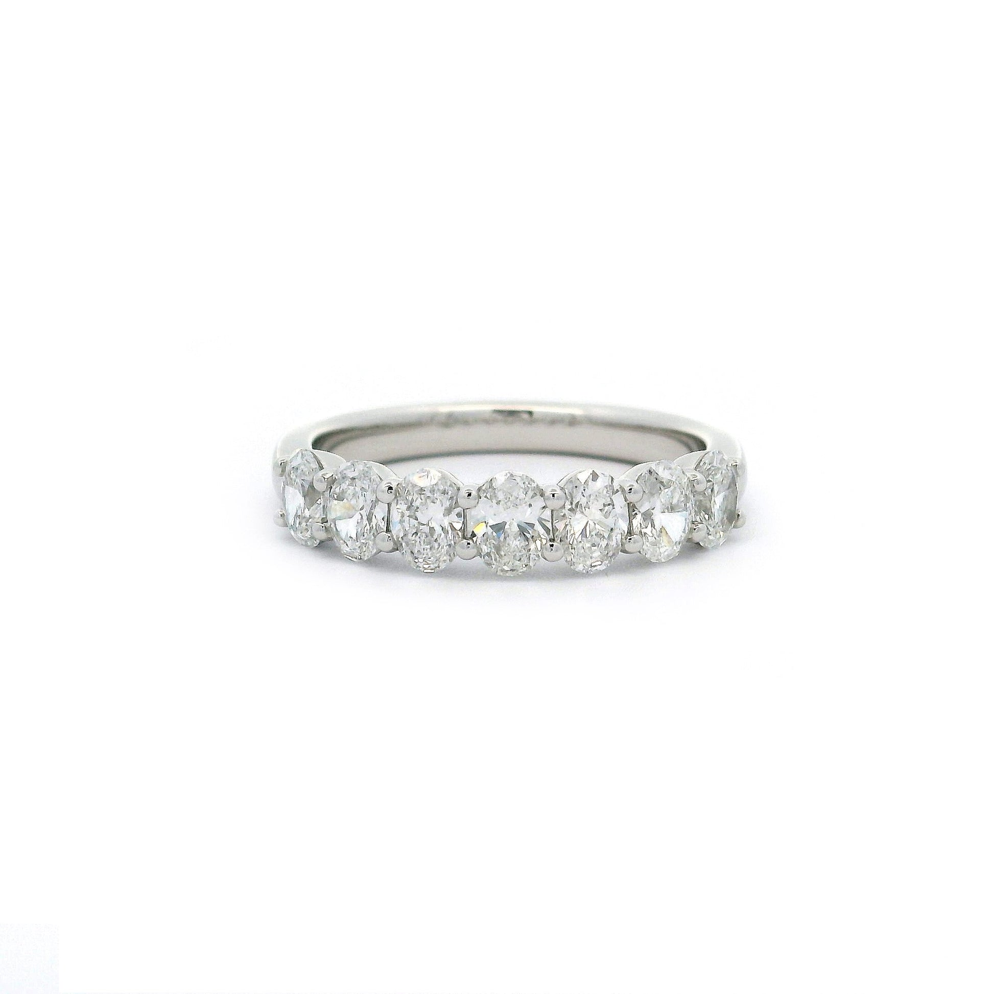 18WG SHARED CLAW RING WITH VERTICAL SET OVAL 7=1.20CT EF VS (2403205) NON CERT, APPROX 4.20 x 3.15MM
