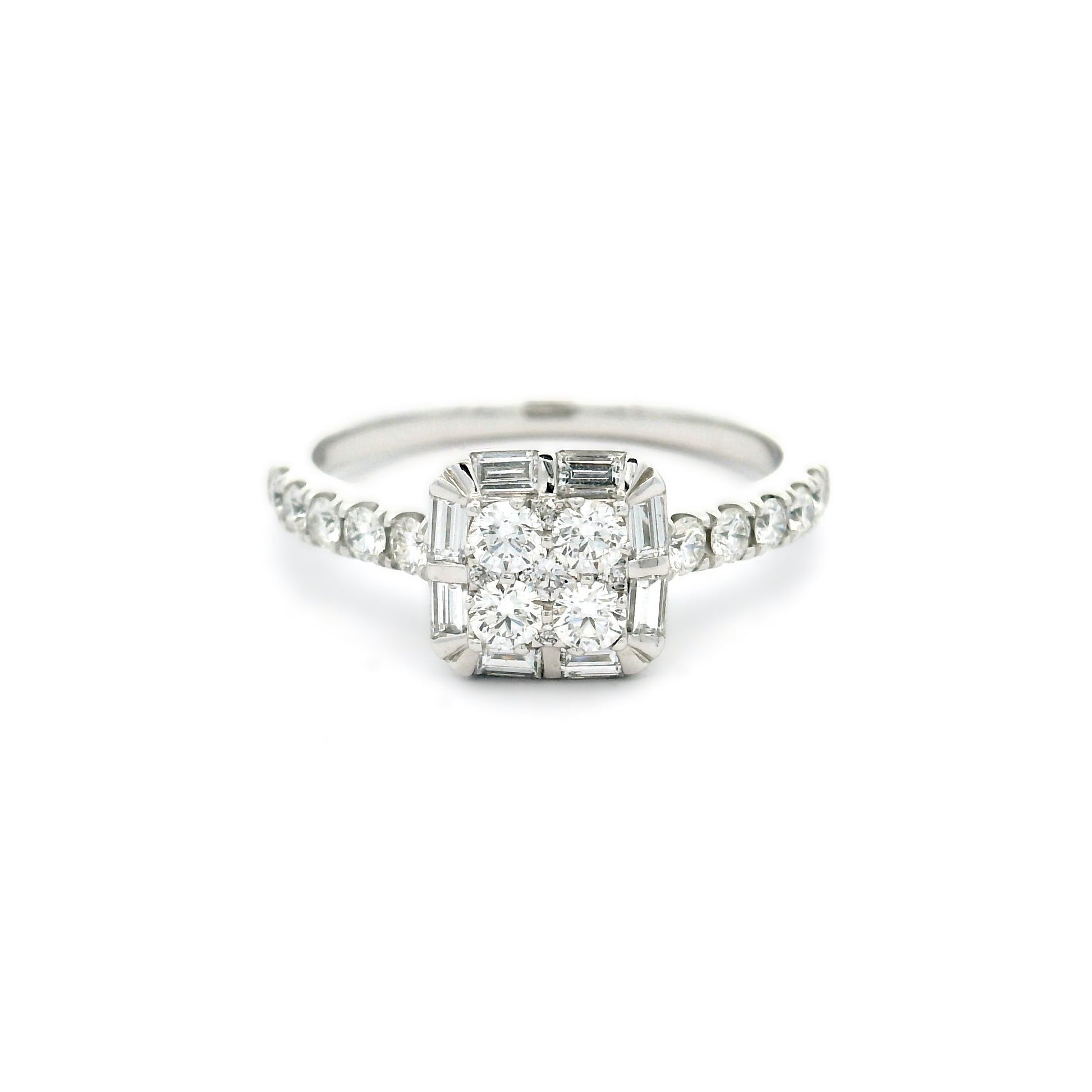 18WG CLUSTER DRESS RING SET WITH BAGUETTE & RBC 27=0.75CT WH SI