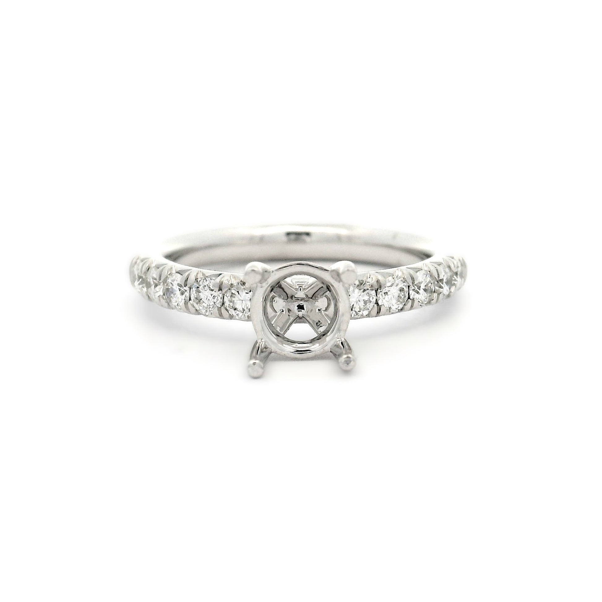 18WG 4 CLAW SEMI MOUNT RING WITH CLAW SET SHOULDER SET WITH RBC 10=0.40ct WH SI TO TAKE 6.40MM RBC CTR **EXCLUDES S&F**