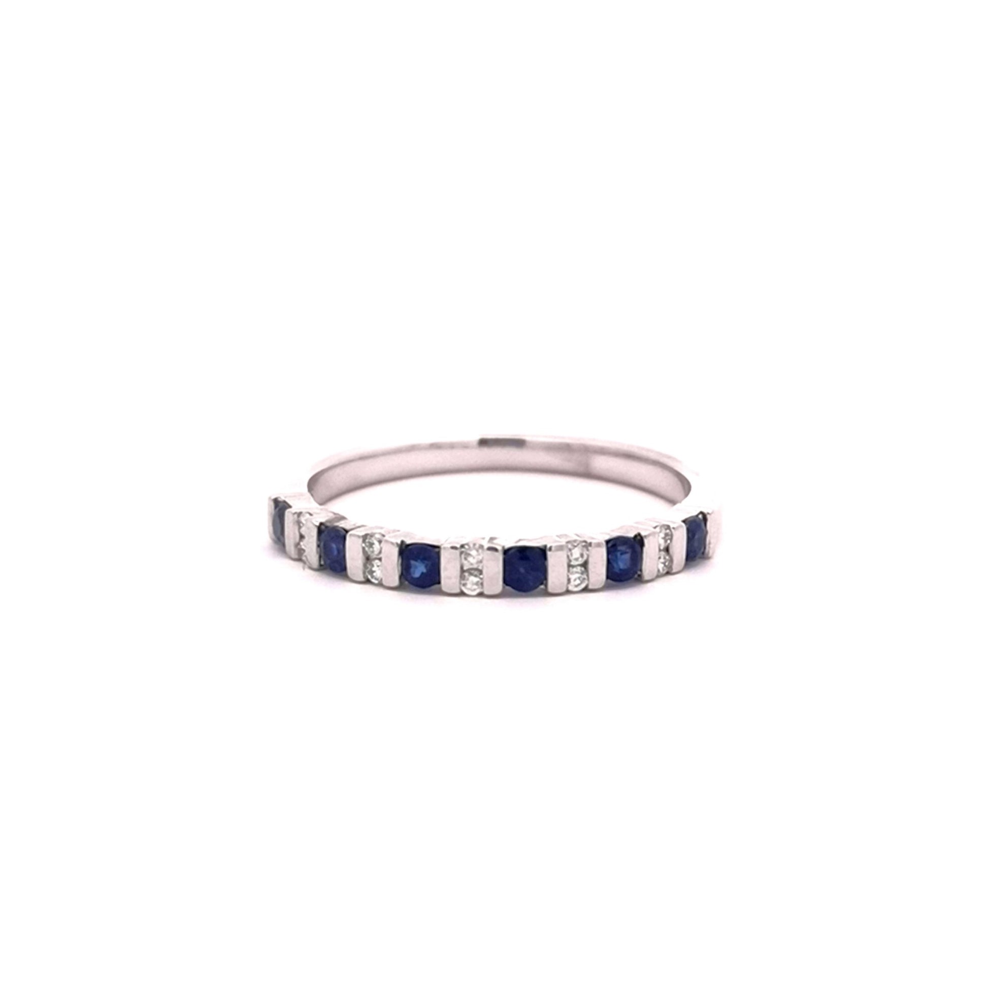 9WG ALTERNATING DIAMONDS 10=0.05CT WH PQ AND 6 BLUE SAPPHIRE FANCY BAR SET RING
