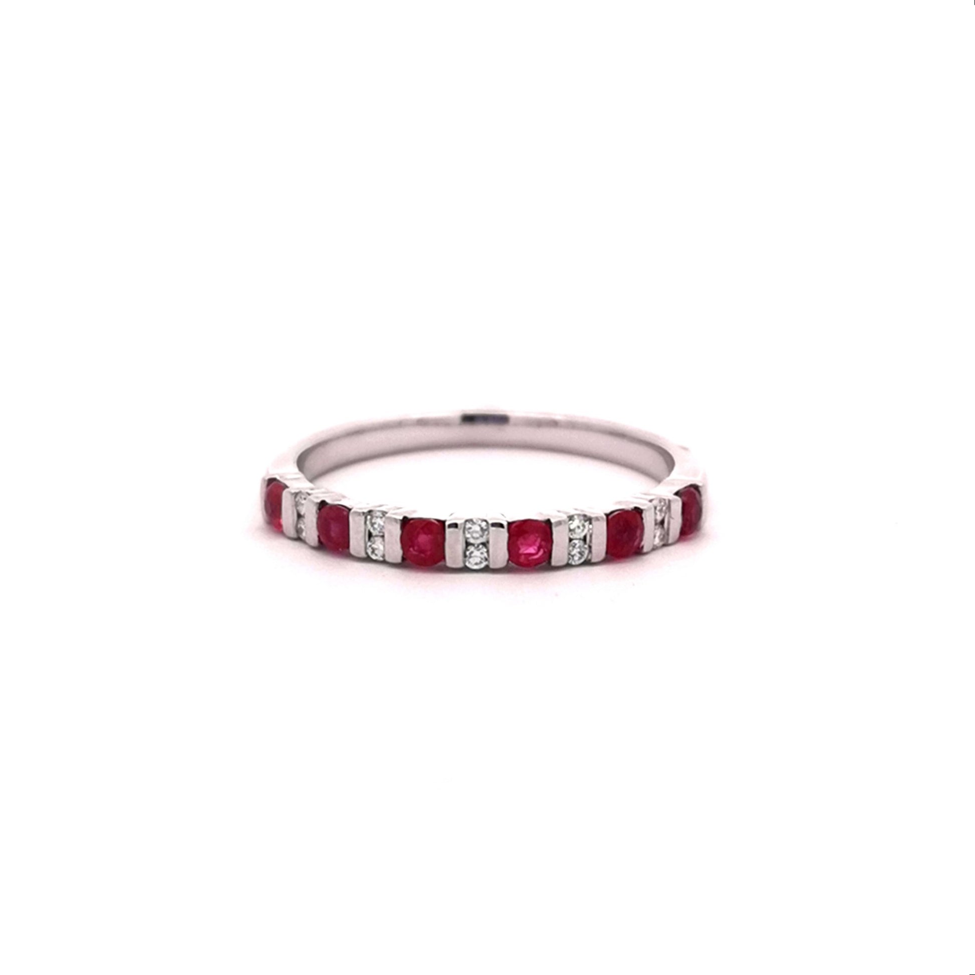 9WG ALTERNATING DIAMONDS 10=0.05ct WH PQ AND 6 PRN RUBIES BAR SET RING